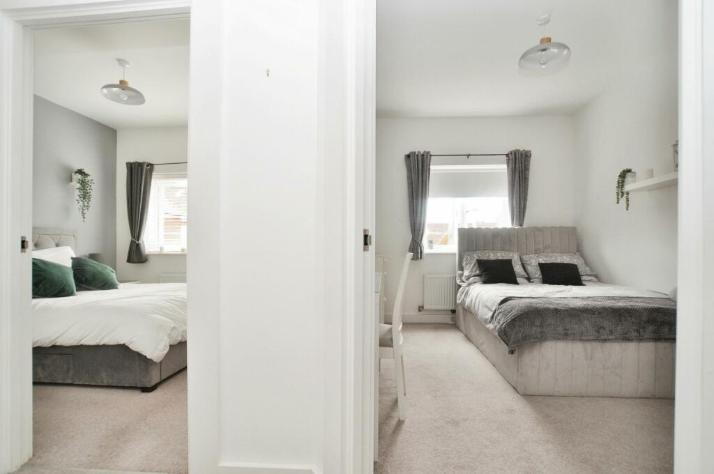 Welcome to Parachute Grove, Henlow! This delightful flat is a gem waiting to be discovered. Built in 2020 (with 6 years remaining on the Guarantee), this semi-detached coach house boasts two double bedrooms, perfect for a small family or those in need of a guest room or home office. <...