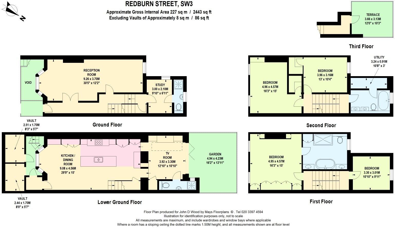 The property located on Redburn Street in the Royal Hospital area of Kensington and Chelsea is a 4 bedroom, 3 bathroom house with a total area of 2,133.81 sqft and a plot size of 2,443 sqft. The list price is £4,500,000.