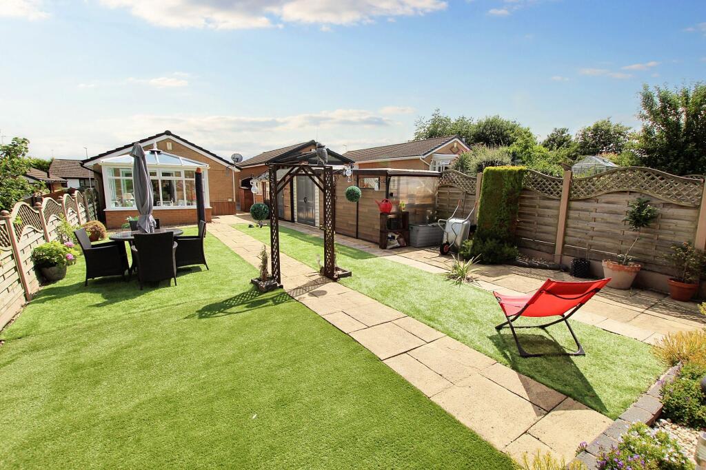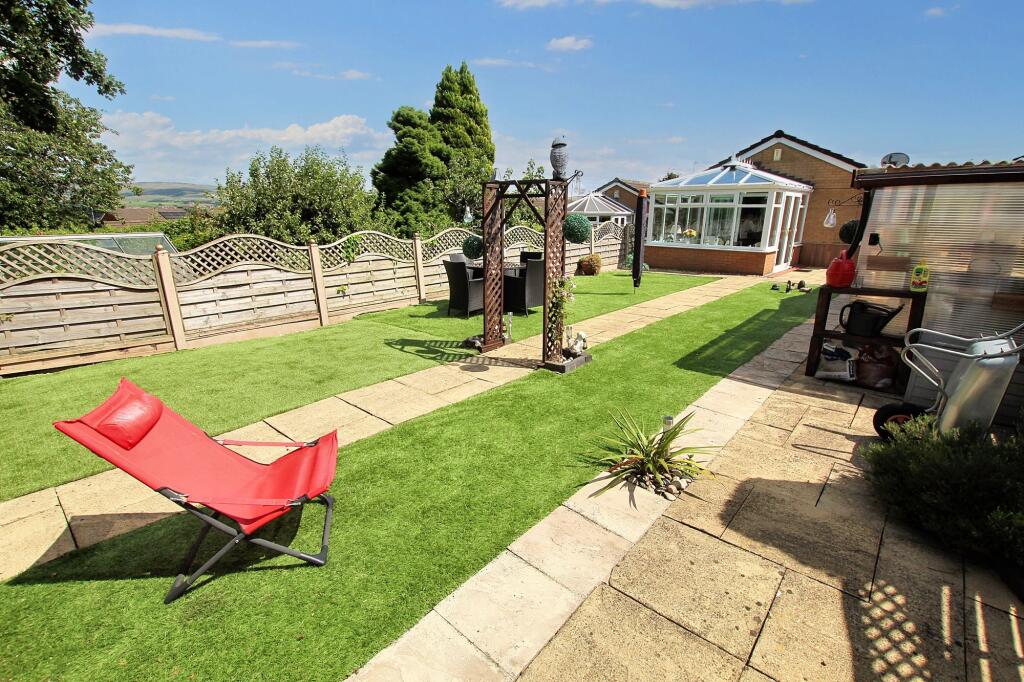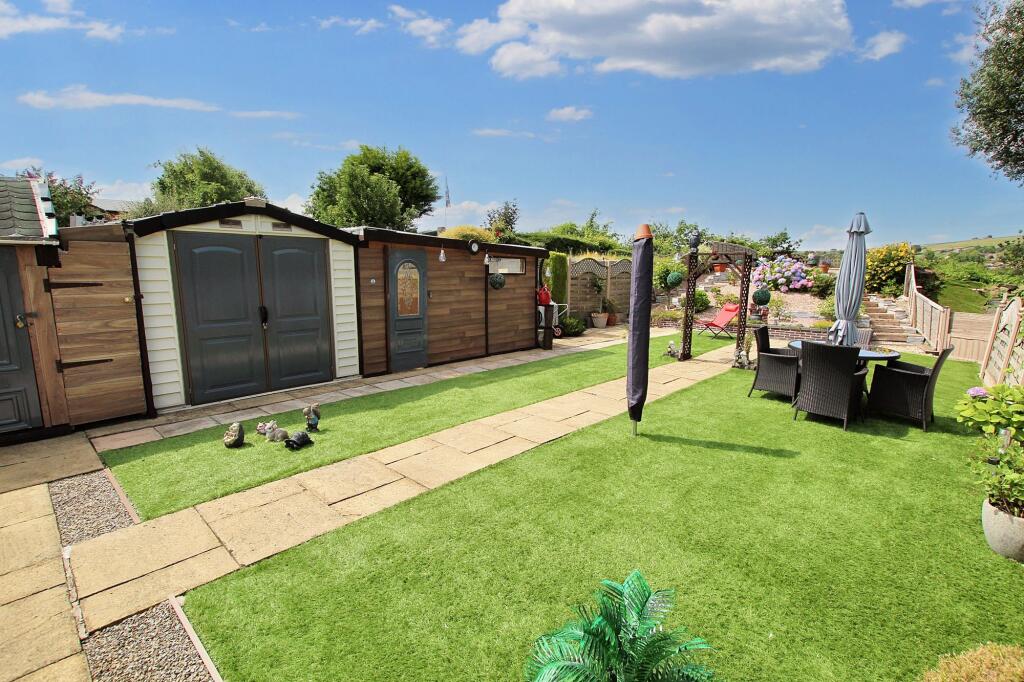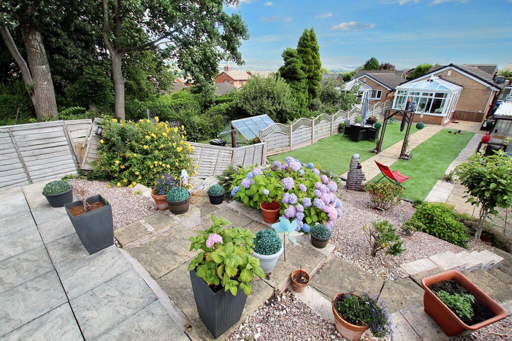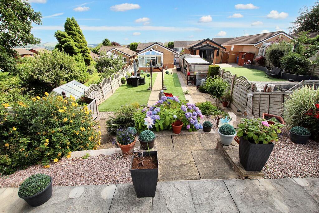 Immaculate 2-bed detached bungalow in serene Cronkeyshaw, Rochdale. Luxurious extended property with modern interiors, Eurostyle kitchen, landscaped garden with stunning views and shed. Perfect for refined living and relaxation. Close to amenities and M62.