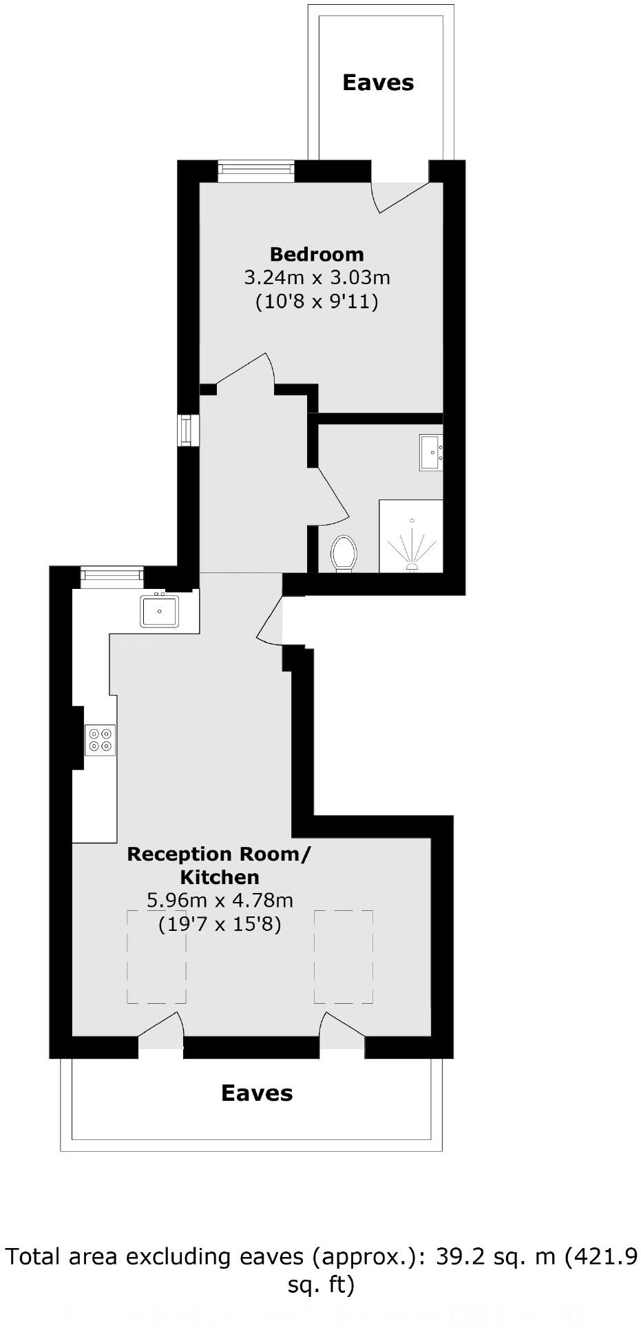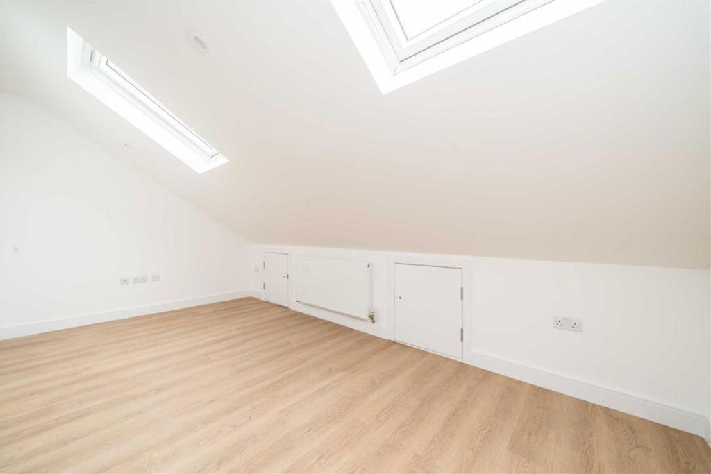 This brand new top floor conversion measures in excess of 420 Sq.Ft. The spacious open plan living area has a well-fitted kitchen with integrated appliances, there is a shower room and a good size double bedroom with storage. The property comes with no onward chain and a share of the freehold.