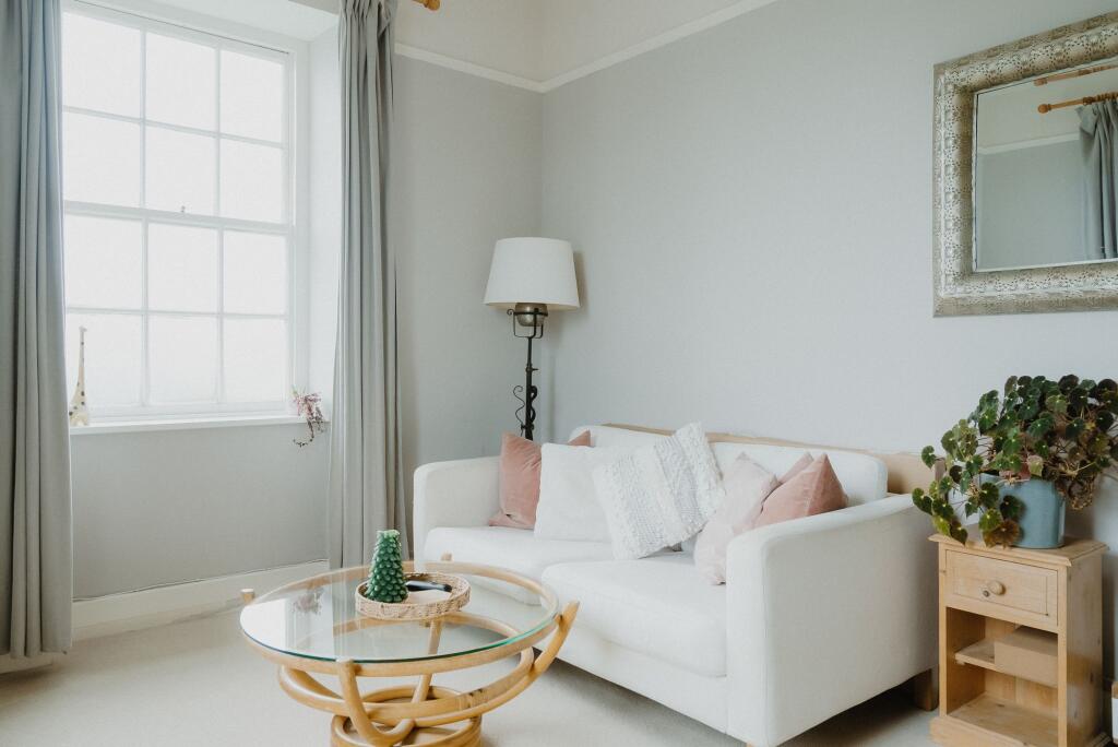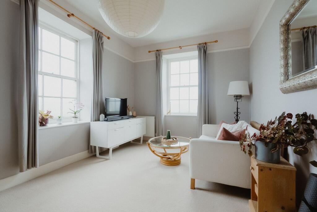 Gorgeous two double bedroom apartment in a former rectory – large light rooms, village setting with views and off-road parking.