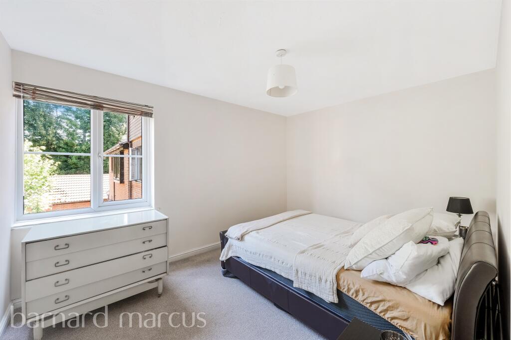 This two-bedroom first floor apartment comprises of indoor space as well as communal garden space, parking and a garage.