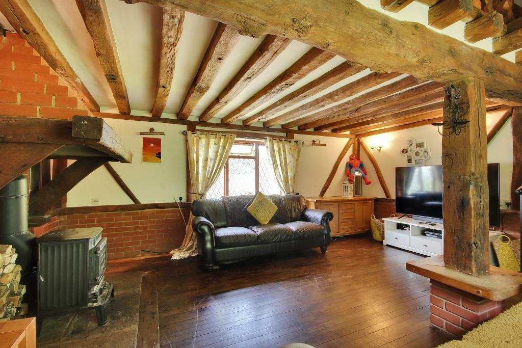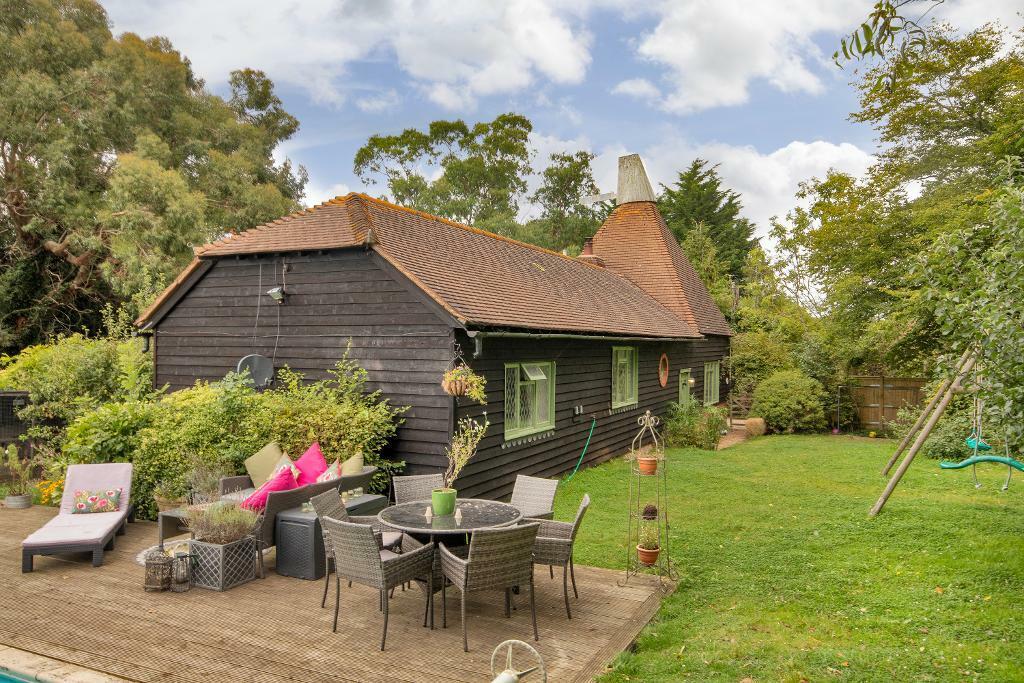 This charming three-bedroom oast house in Northiam, East Sussex, offers a unique blend of character and potential. Built in 1985, the property retains several original features, such as exposed beams and a distinctive oast house structure, creating a welcoming atmosphere. The interior features a wood burning stove adding character and warmth and includes a well maintained bathroom. The property benefits from a substantial garden with a large swimming pool and decking area, perfect for entertaining and outdoor recreation. The property’s location on a peaceful country lane is ideal for those seeking a tranquil lifestyle, yet remains relatively convenient to the village of Northiam and its amenities. While the property shows some signs of requiring modernisation and updating, this is typical of properties of this style and era and offers further opportunities to add value. Overall, it presents an appealing prospect for buyers in search of a character home with outdoor space in a sought-after East Sussex village. A full structural survey would be advisable, and buyers should make their own assessments regarding any necessary renovations and their associated costs.