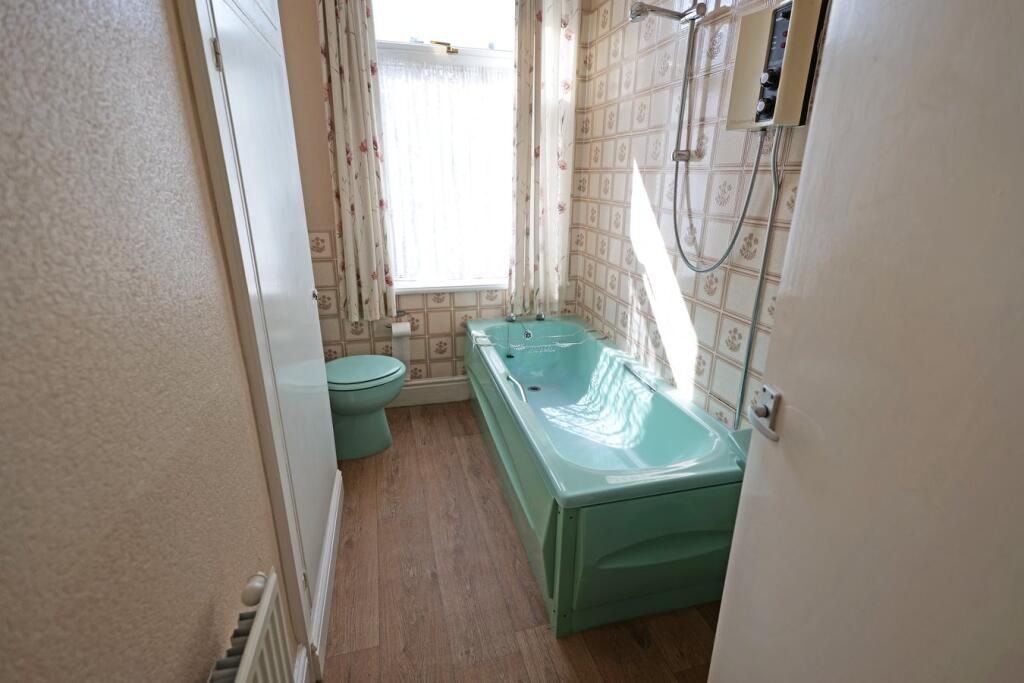 The property is a terraced house located in Barnoldswick, Lancashire. It has 2 bedrooms and 1 bathroom. The listing price is £95,000, which is lower than the average property price in the area. The property is located close to schools and transportation links. The property is in need of renovation, particularly the carpets and bathroom. The kitchen looks to have been modernised. The property has a small outdoor area. The price seems reasonable given the condition of the property and the need for renovation.