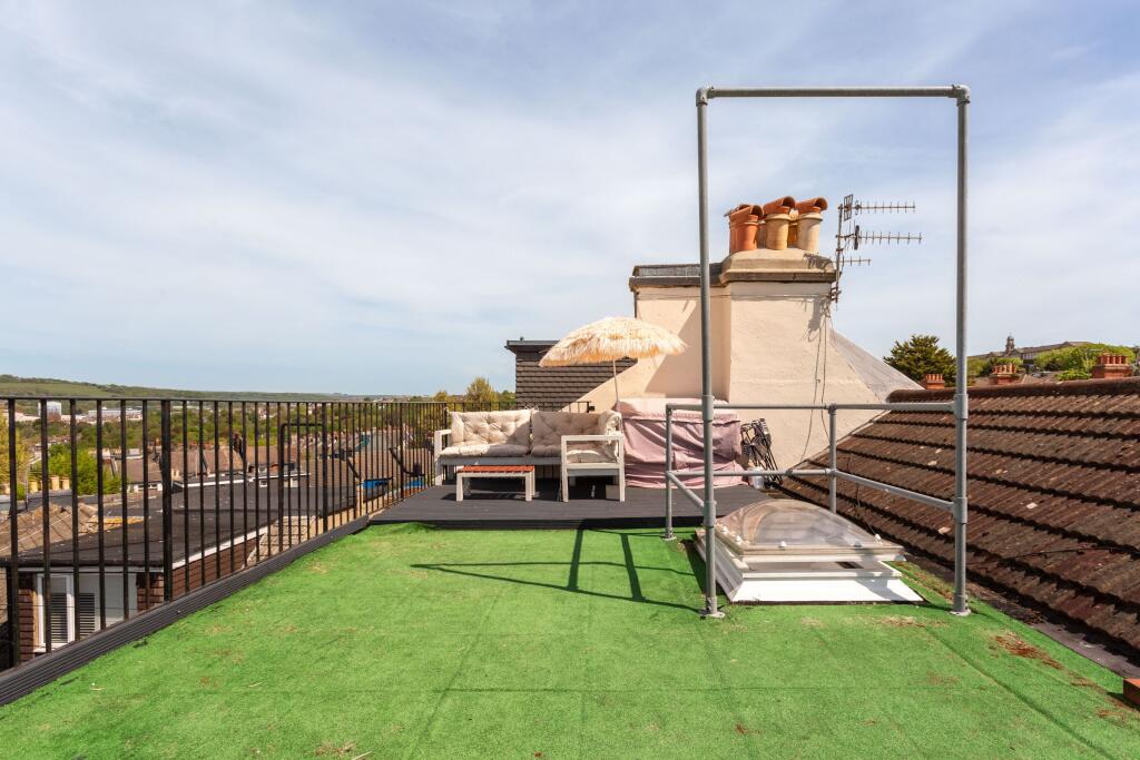 Guide Price £400,000 to £425,000 An opportunity to purchase this two bedroom end of terrace house in a sought after Hanover location. This property benefits from two double bedrooms, kitchen/ breakfast room, good sized roof terrace with stunning Brighton views, patio garden and off st...
