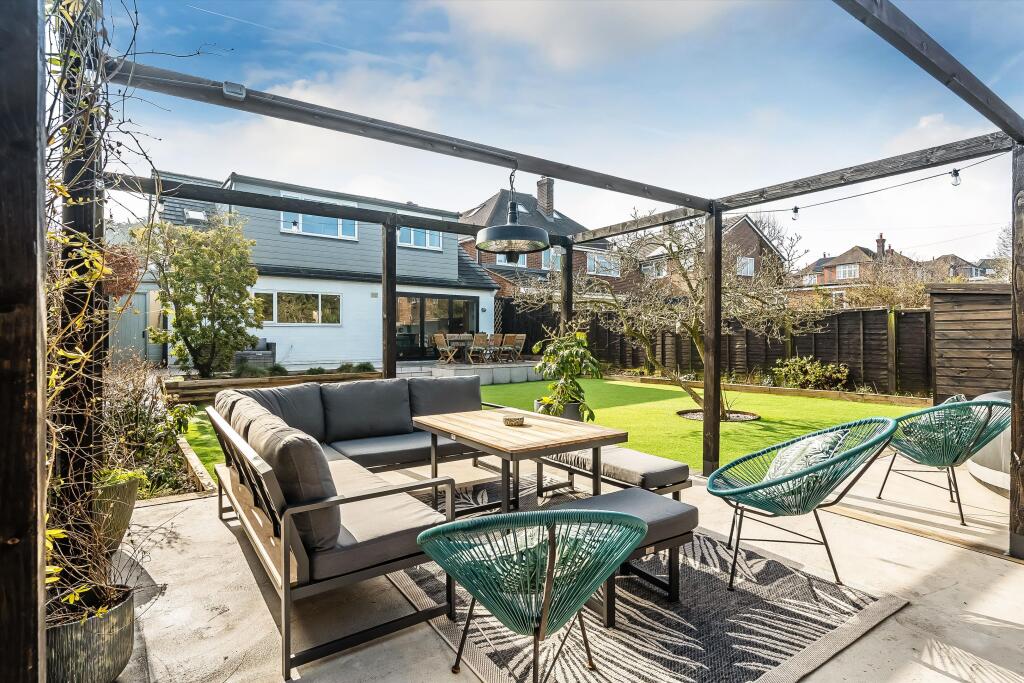 This property is a 5 bedroom, 2 bathroom detached house located in Onslow Village, Guildford. The property benefits from a large, well-maintained garden, with patio areas and a pergola. The interior is modern and stylish, having been recently renovated to a high standard. The kitchen is contemporary and well-equipped. The location is excellent, being situated in a desirable and family-friendly village within easy reach of Guildford town centre. There are several highly-rated schools nearby, including Onslow Infant School and Queen Eleanor’s Church of England School, both rated ‘Good’ by Ofsted. Transport links are also good, with Guildford train station providing connections to London and other major towns and cities. Based on the images provided, the property appears to be in excellent condition, having undergone a recent and high-quality renovation. The finishes and fixtures throughout the house appear modern and well-maintained. Given the property’s condition, location, and the size of the garden, the asking price of £1,200,000 appears reasonable in comparison to other properties in the area. Whilst there is a lack of square footage data, the price is in line with other similar properties in Onslow Village, and slightly above the average price for the area.