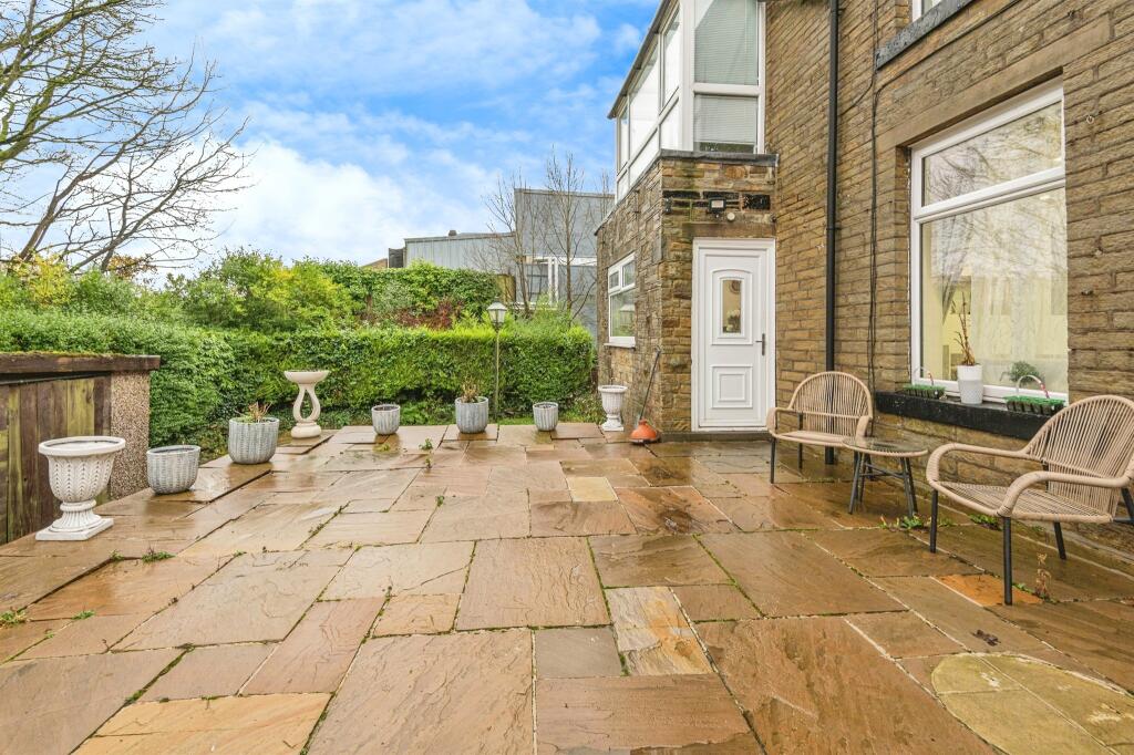 This is a four-bedroom detached property located in Queensbury, Bradford. The house has been modernised internally and includes a modern kitchen and bathroom. It also benefits from a garden and patio. The property is located a short distance from local schools and amenities. The nearest train station is over 5km away. Overall, this property offers a blend of modern living within a traditional setting.