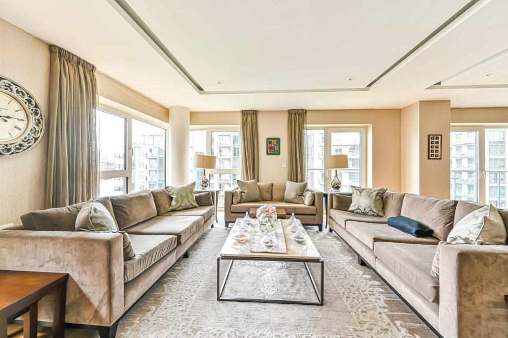 A spacious and modern 6th floor, 3 bedroom luxury apartment in a prestigious riverside development, very big reception room / dining room, 2 bathrooms fitted kitchen, larder and wardrobe / storage space.