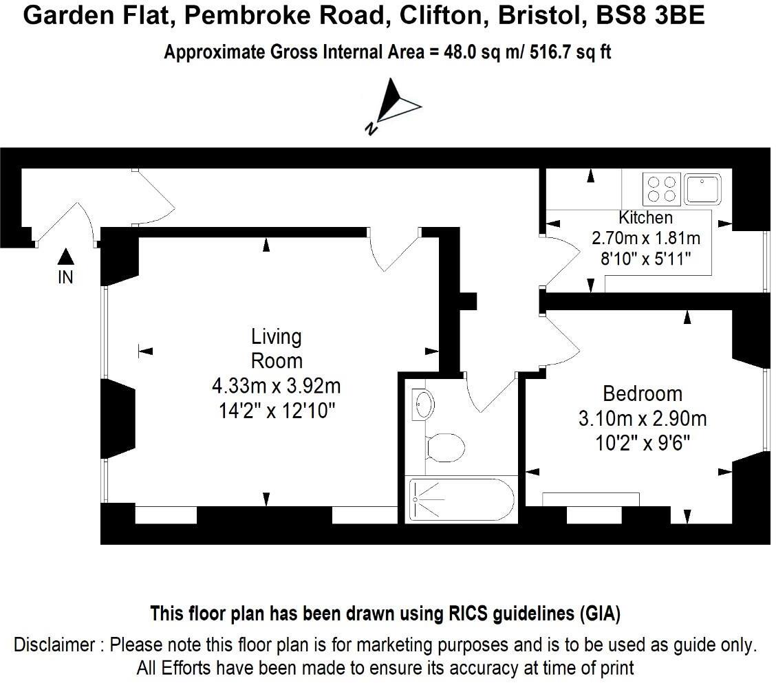 This property is a well-presented one bedroom flat located in the desirable Clifton area of Bristol. The flat itself is in excellent condition and has been recently renovated to a high standard, with a modern kitchen and bathroom. There is a private courtyard garden, which is a rare find for a city centre flat. The location is ideal, with excellent transport links and a range of amenities within easy reach. Clifton is known for its high property values, and this flat is priced competitively for the area. While the average price per square foot in the area is higher, this property offers a good balance of size, location, and condition.
