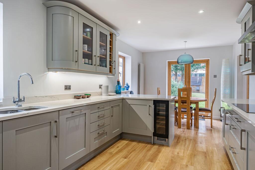 Exquisite extended property in prestigious Woodcote Estate. 27ft living room, kitchen/brk rm, 4 spacious bedrooms, two bathrooms, potential loft conversion (stpp). Sunny garden, garage, off-street parking for multiple vehicles. Contact us for viewing.