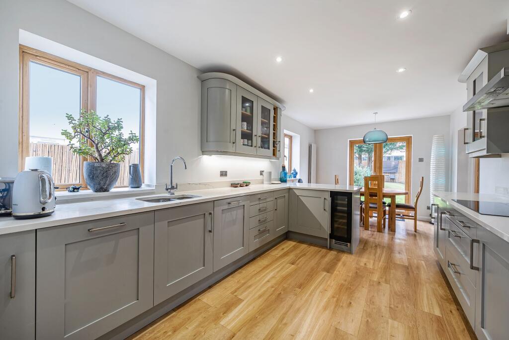 Chantry Hurst, Epsom, KT18 is a 4 bedroom, 2 bathroom detached property situated in the desirable Woodcote area of Epsom, Surrey. The property benefits from a good size plot with a garden and is conveniently located near several highly-rated schools, including St Joseph’s Catholic Primary School and Rosebery School, both rated as ‘Outstanding’ by Ofsted. Epsom town centre and its amenities are also within easy reach. The property itself appears to be in excellent condition, having undergone a recent modernisation, as evidenced in the provided photographs. The kitchen and bathrooms show modern fixtures and fittings, and the overall presentation is clean and well-maintained. The property also has a garage. The average house price in the area is £556,863, significantly lower than the list price of £1,250,000. However, the average house size is 992 sqft, considerably smaller than the 1,570 sqft of this property. Furthermore, the average price per sqft in the area is £561, while this property’s price per sqft is approximately £796. Considering the property’s size, condition, location, and the presence of a garden, the list price, while high, may be justified by the premium associated with larger properties in this desirable location and their superior condition. Nearby comparable properties support this, with several detached houses in the area listed for prices exceeding £800,000.