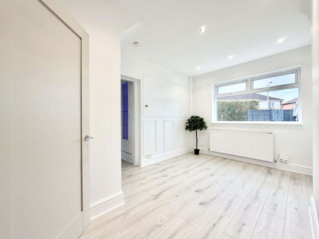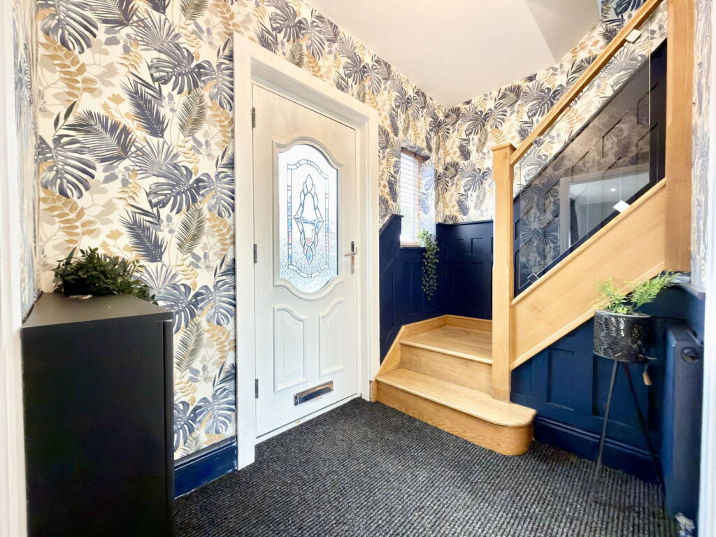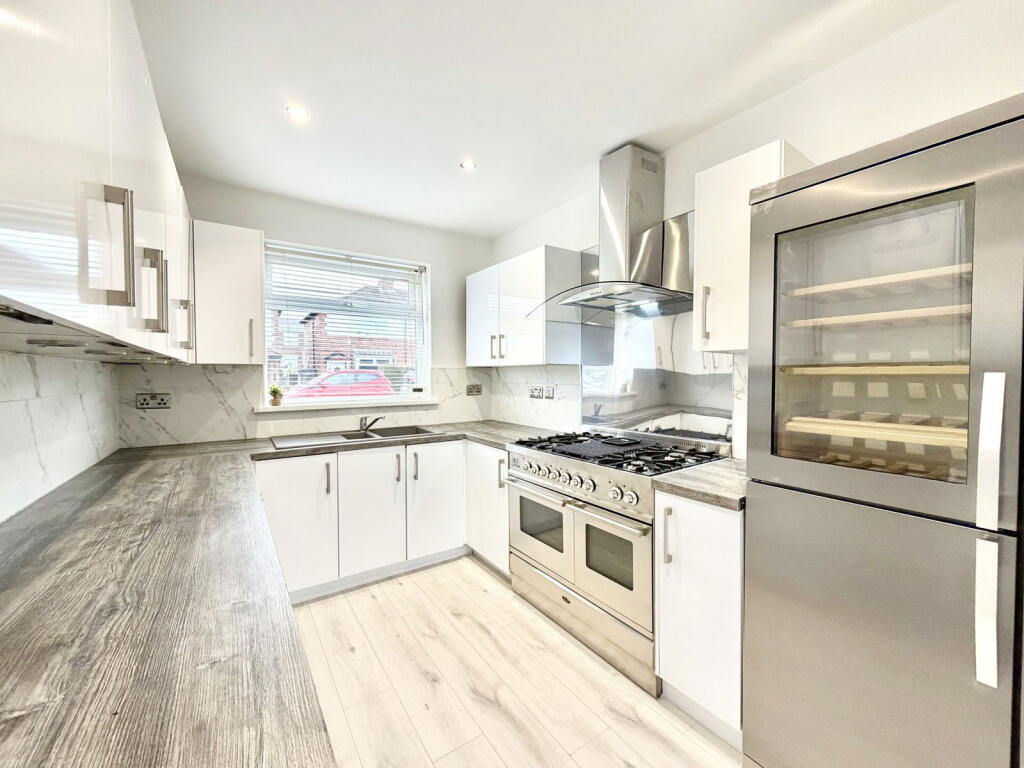 This is a semi-detached property on Forbes Road, Offerton, Stockport. The house has five bedrooms and two bathrooms. The property appears to be in good condition, with a modern interior and a well-maintained garden. The location is convenient, with nearby schools and transportation links. The property benefits from a modern kitchen, utility room and ensuite.