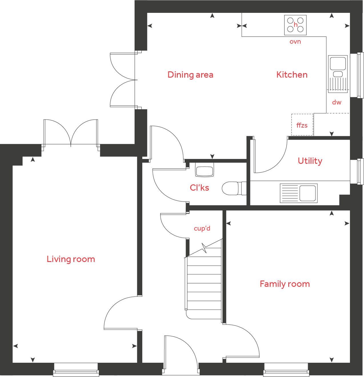 Home 143 - The Knightley The popular 'L' shape of this property means that both the living room and the kitchen/dining room provide direct access, though French doors, into the garden. The ground floor has the considerable benefit of an additional living space at the front of the ...