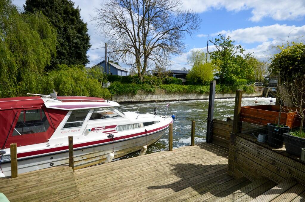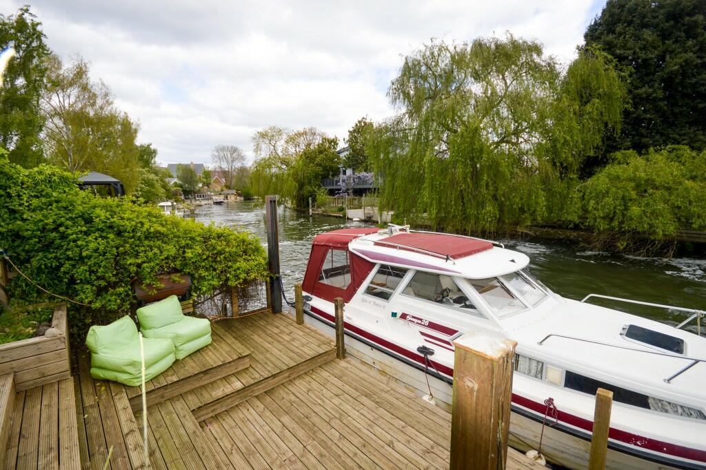 We are delighted to present this attractive detached chalet located within a quiet private lane commanded on an idyllic location backing onto a picturesque backwater of the river Thames with direct frontage and a private mooring.