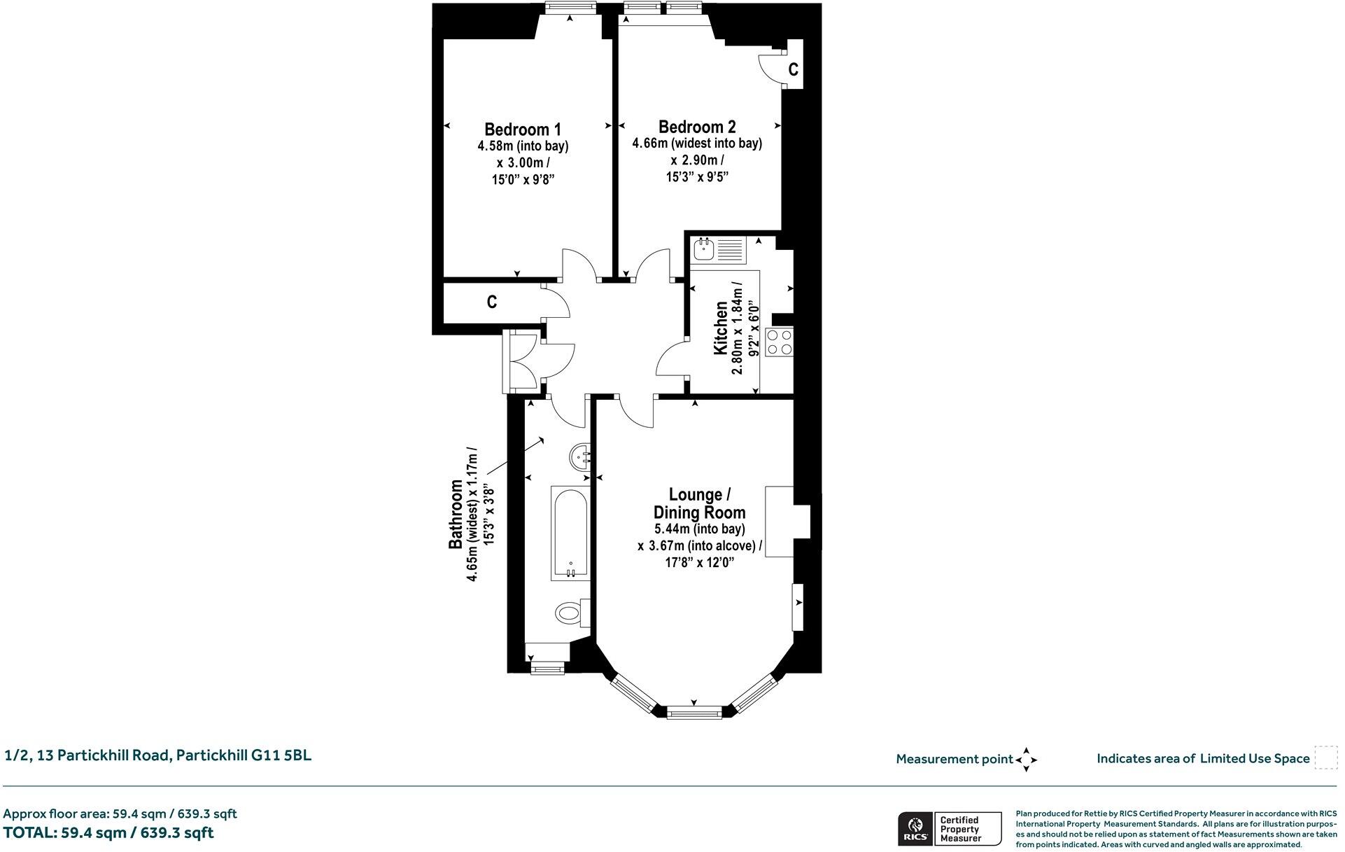 The property is a well-maintained 2-bedroom, 1-bathroom apartment located in a convenient area of Glasgow. The apartment is situated in a traditional red sandstone building with original period features, and benefits from modern fixtures and fittings in the kitchen and bathroom. The property is within walking distance of several train stations, offering good transport links. The list price seems reasonable considering the average price per sqft in the area and comparable nearby listings. The property is smaller than the area average and does not appear to include a private garden.