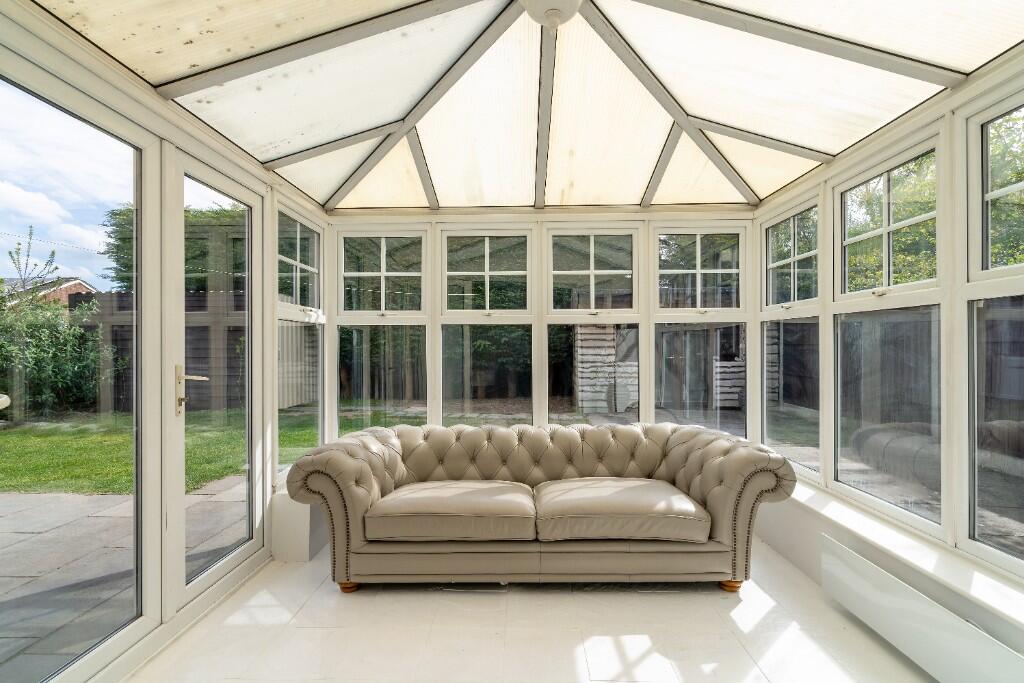 Generously proportioned four/five bedroom (1801 sq ft) family home situated within a comfortable stroll of the Kibworth High Street offering flexible accommodation to include a ground floor bedroom and shower room, ancillary storage/workshop/gym to either side, summer room/home office and no chain.