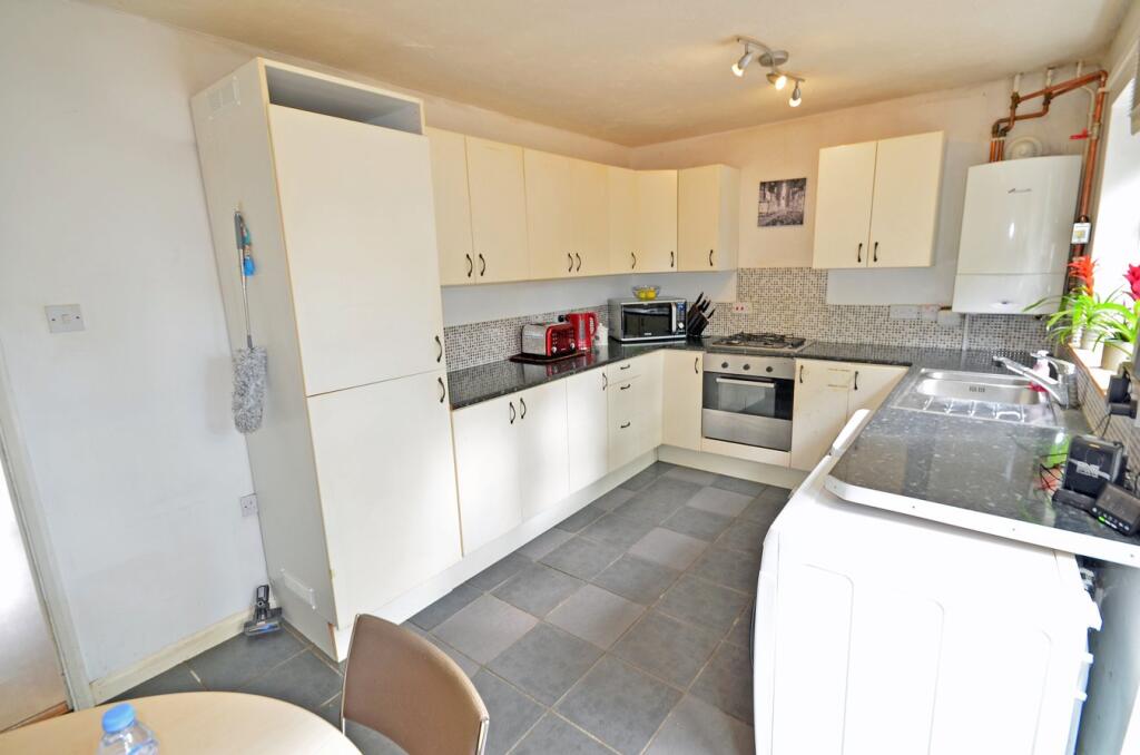 A spacious two bedroom end of terrace property representing an ideal first time or investment purchase, situated at the end of a cul de sac. On the ground floor, to the front of the property is a lounge, and at the rear is a 15ft kitchen/breakfast room with built-in oven and hob, cupboar...