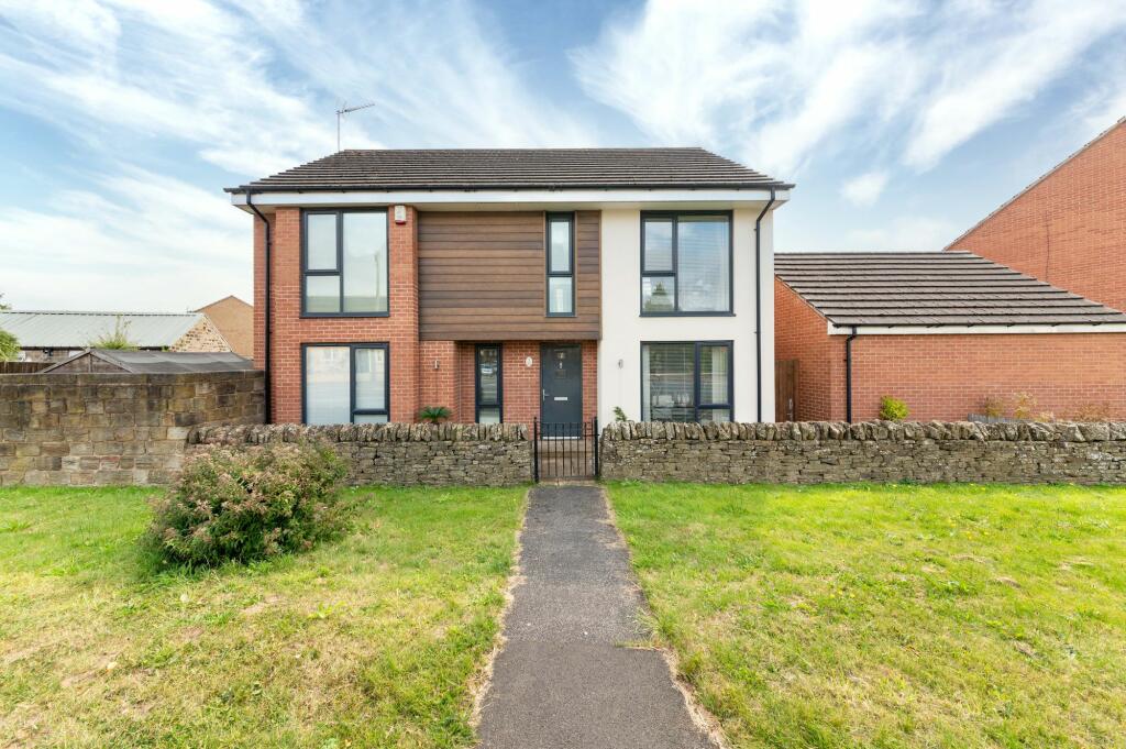 This four-bedroom detached house located on Lee Lane in Royston, Barnsley, presents a modern and well-maintained family home. The property boasts a contemporary design, evident in the high-quality fixtures and fittings shown in the photographs. The interior is bright, spacious, and neutrally decorated. The open-plan kitchen and dining area is a notable feature, perfect for modern living.