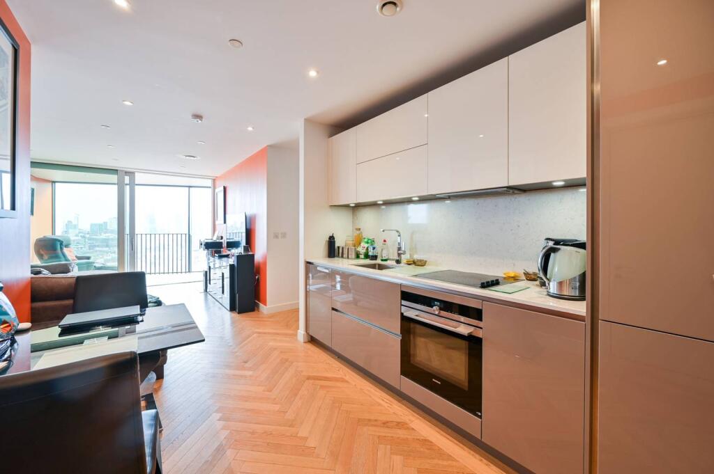 SHORT LET. Set on the 28th floor of a fantastic new development, this 1 bedroom flat boasts stylish interiors including a winter garden with exceptional views of the City.