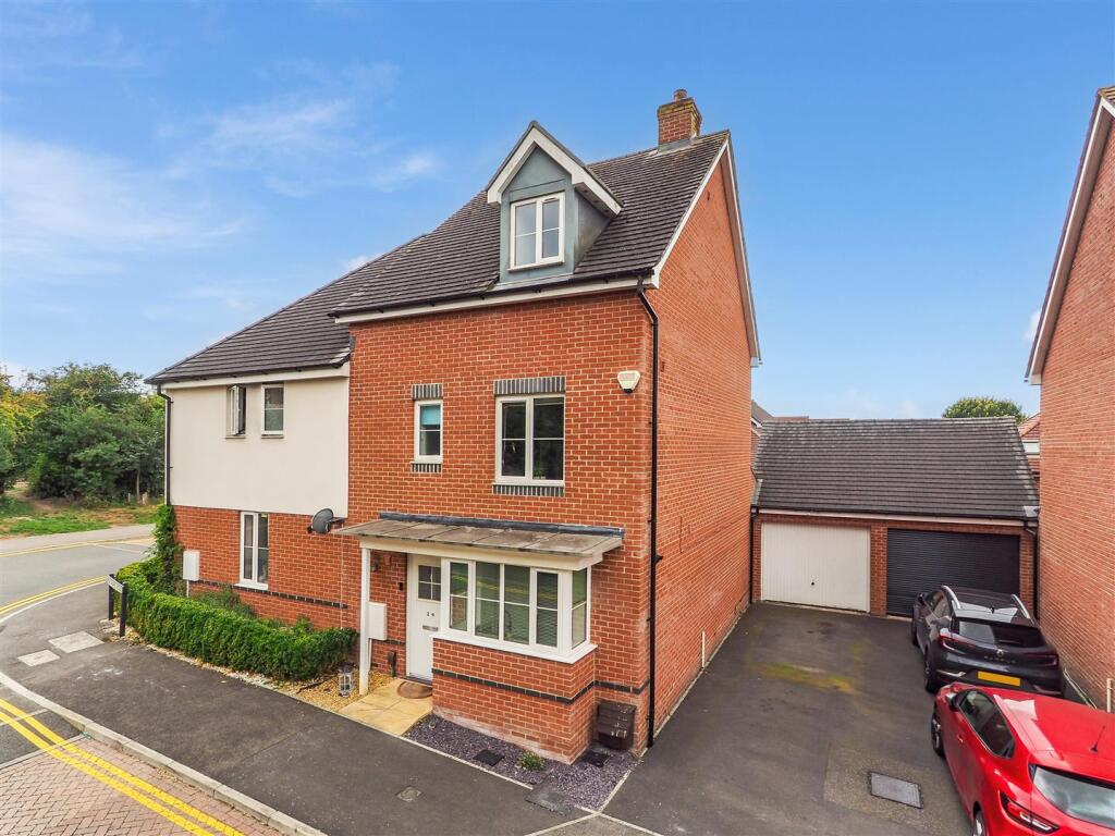 Modern three-storey townhouse with four bedrooms, including a top-floor en-suite main bedroom. Features a bright kitchen, spacious sitting room with garden access, family bathroom, patio and lawn garden, driveway parking, and a garage. Convenient location close to amenities, schools, and transpor...
