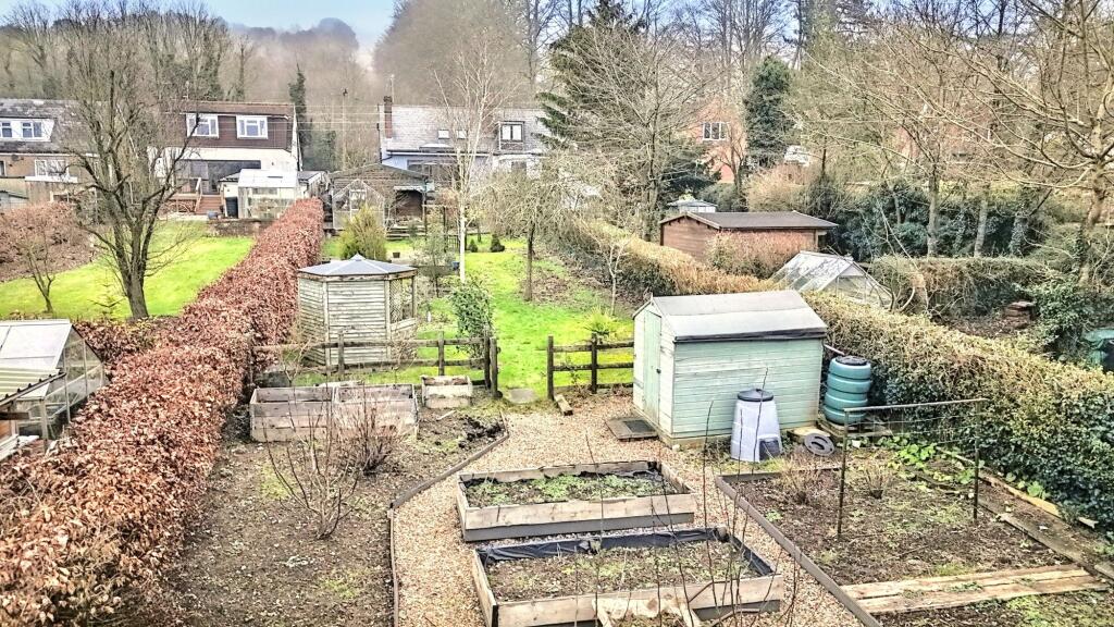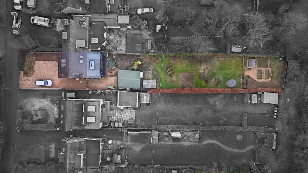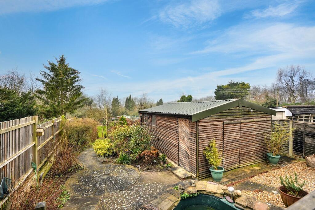 The property includes a garden, which appears to be of a reasonable size. The garden contains several features, including raised garden beds, a shed, and a pond, suggesting potential for both relaxation and practical use. However, the size of the plot is listed as 0.00 SQFT, which is inconsistent with the images. Clarification on the actual plot size would be beneficial for a more accurate assessment.