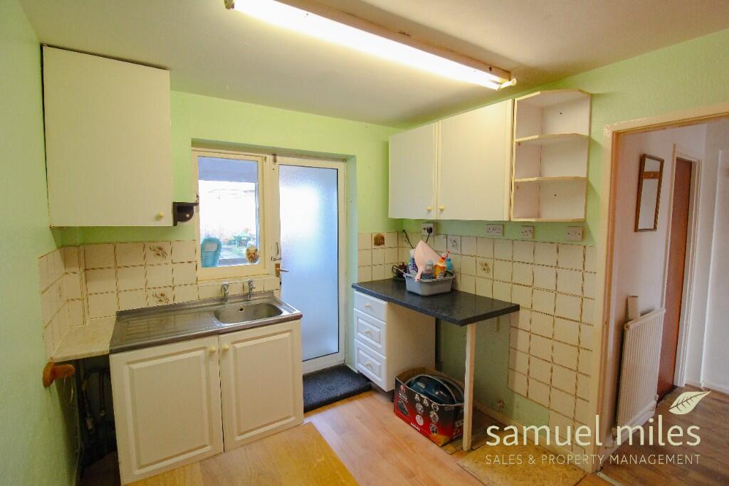 "OFFERED WITH NO CHAIN, A GENEROUS TWO-BEDROOM SEMI-DETACHED HOUSE WITH A GOOD SIZE PLOT AND A LARGE DETACHED GARAGE TO REAR".This property has a great deal of potential for extension to the rear and many of the houses of this type in this location are now three bedrooms. Whilst this property has