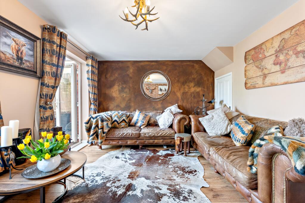 The property appears to be in good condition, with a modern kitchen and updated bathrooms. The interior decor is stylish and well-maintained. The garden is relatively small but well-maintained with a patio area and shed.