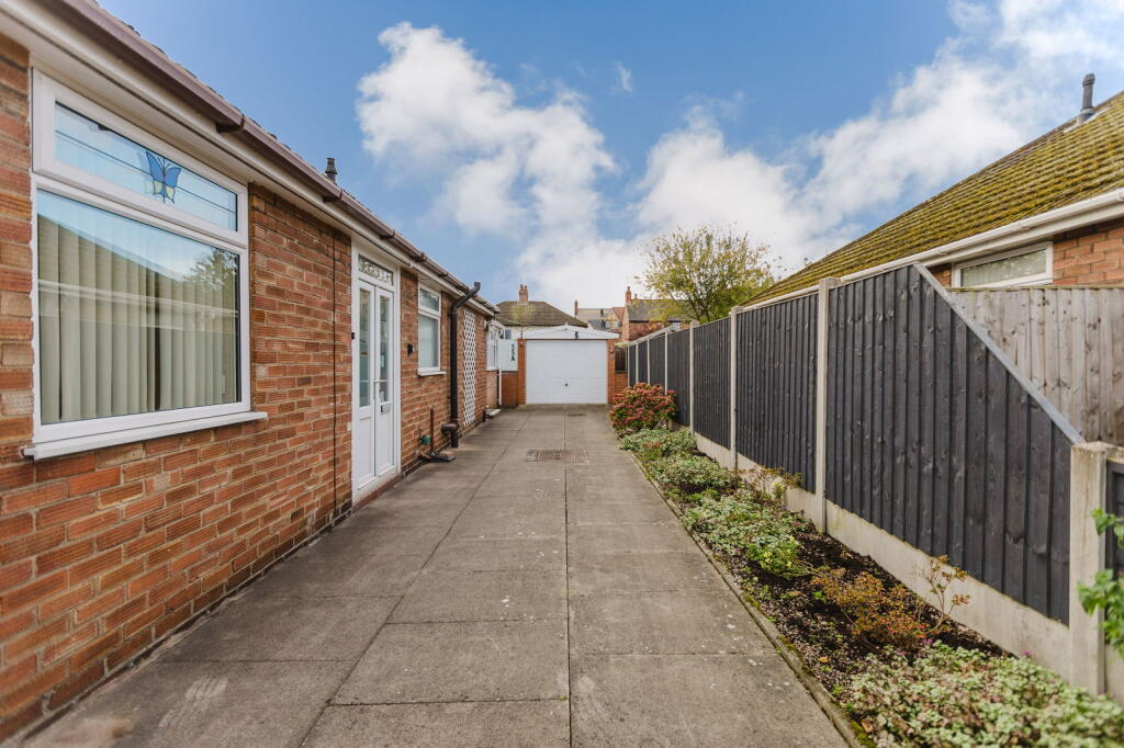 This is a detached bungalow located on Kipling Way, Crewe. It features two bedrooms and one bathroom. The property is in generally good condition, with a modern bathroom and a well-maintained interior. The kitchen could benefit from some updating. The property benefits from good transport links and nearby schools. The garden is paved and easy to maintain. Overall, this property presents a good opportunity for potential buyers looking for a well-maintained bungalow in a convenient location.