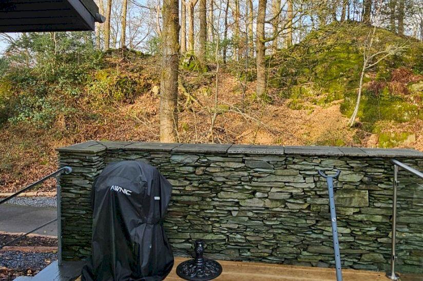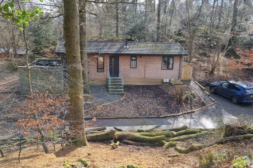 The property is a two-bedroom lodge located in Buck Yeats Lodge Park, Newby Bridge, Cumbria. Based on the provided images, the property appears to be in excellent condition, recently constructed or renovated to a high standard. The interior is modern and well-maintained, with contemporary fixtures and fittings. The lodge is situated within a wooded area, offering a tranquil and secluded setting. While the plot size is not specified, the immediate surroundings appear to be relatively small, with a gravel area and some landscaping. There is a small decked area and a stone wall providing some degree of privacy. The lack of information regarding the exact plot size makes it difficult to comment definitively on the amount of land available.