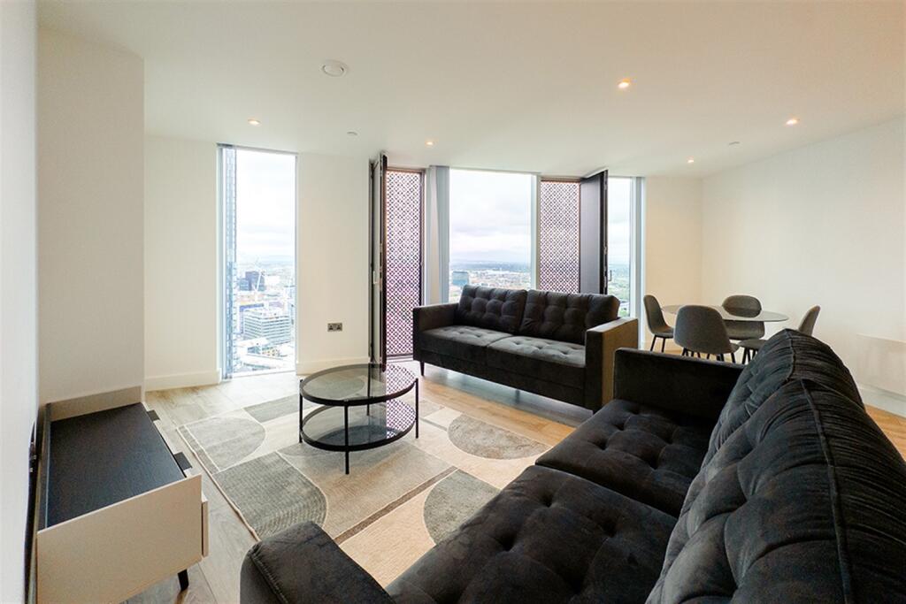 This property is a modern two-bedroom, two-bathroom apartment in the Three60 building in Manchester. The apartment is in excellent condition and benefits from modern fixtures and fittings. The location is excellent, with Deansgate train station within walking distance and several highly-rated schools nearby. While the apartment itself does not have a private garden, the building offers residents access to communal outdoor spaces, including a landscaped courtyard. The list price is slightly above the average price per square foot for the area, but given the modern condition, desirable location, and amenities, it could be considered reasonable for a discerning buyer.