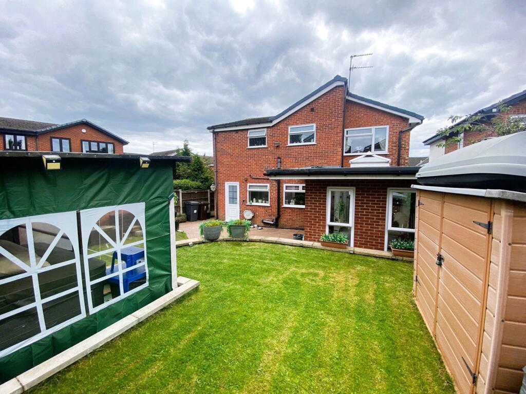 A detached property in Chadderton, Oldham featuring four bedrooms and three bathrooms. It is located near schools and transportation. The property has a garden with a shed. While generally well-maintained, some areas could benefit from modernisation.