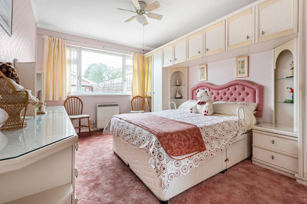 A two / three bedroom bungalow sited on a corner plot with a westerly facing wrap around garden and single garaging. No chain.