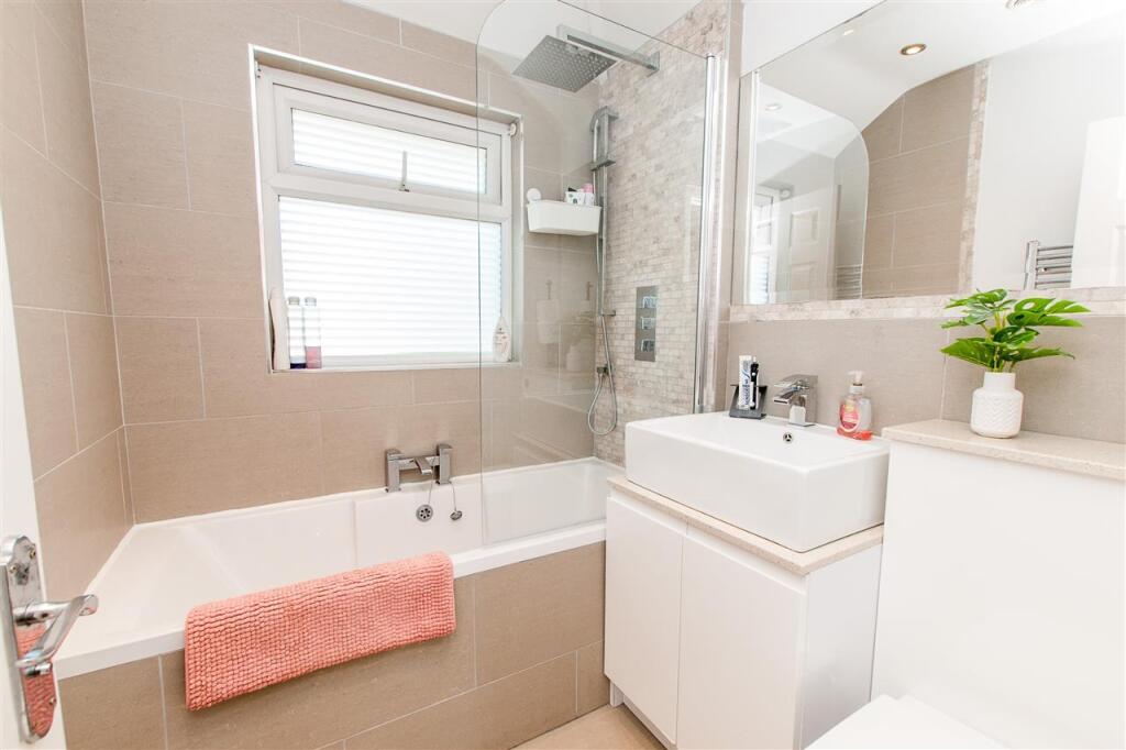 A beautifully presented and extended three bedroom semi-detached family home situated in a sought-after cul-de-sac within easy reach of local amenities, primary school and train station. Upon entry, the hallway leads through to a living room with a bay window allowing in copious amounts of l (cont.)