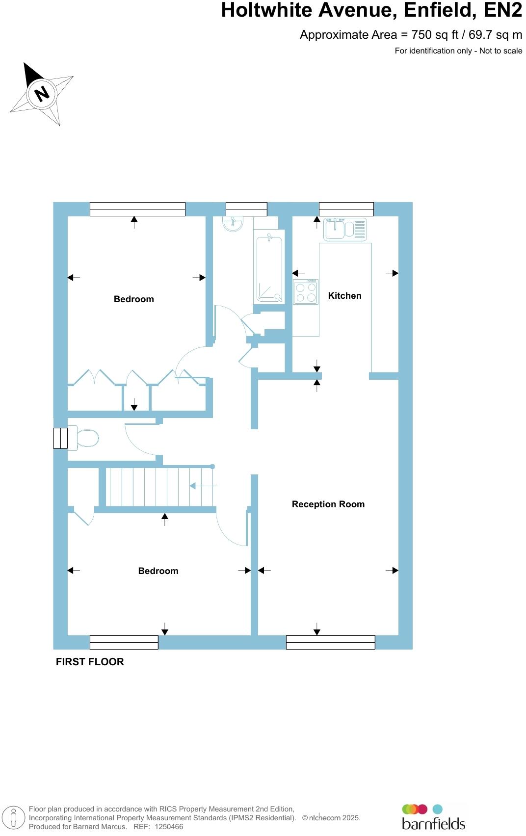 Spacious, first floor two bedroom (both doubles) maisonette, in the bowl of a quiet cul-de-sac, just off Chase Side, with its local shopping parades and within easy walking distance of Enfield Town multiple shopping centre and rail stations. Chain free. Share of freehold.