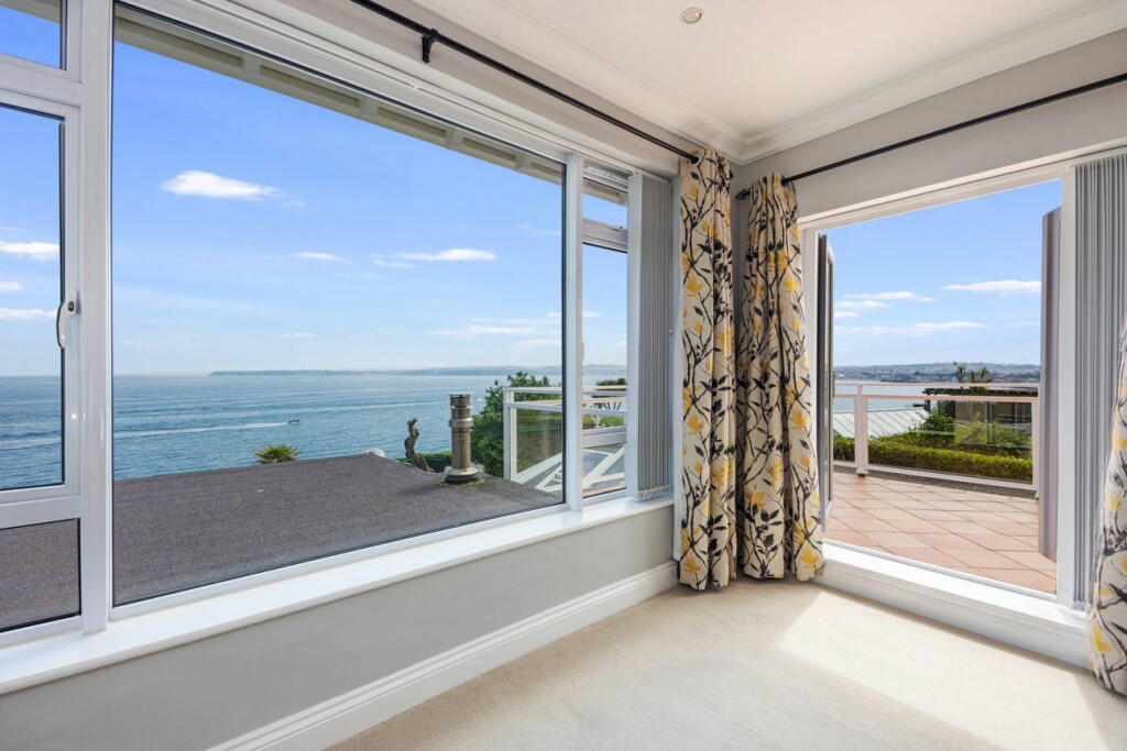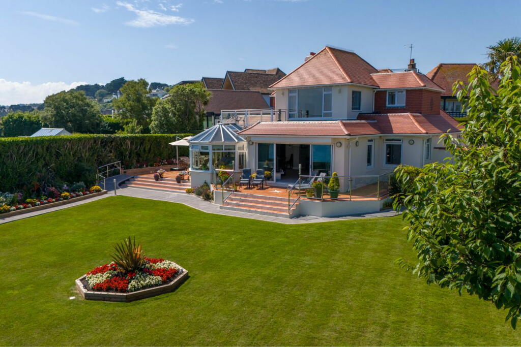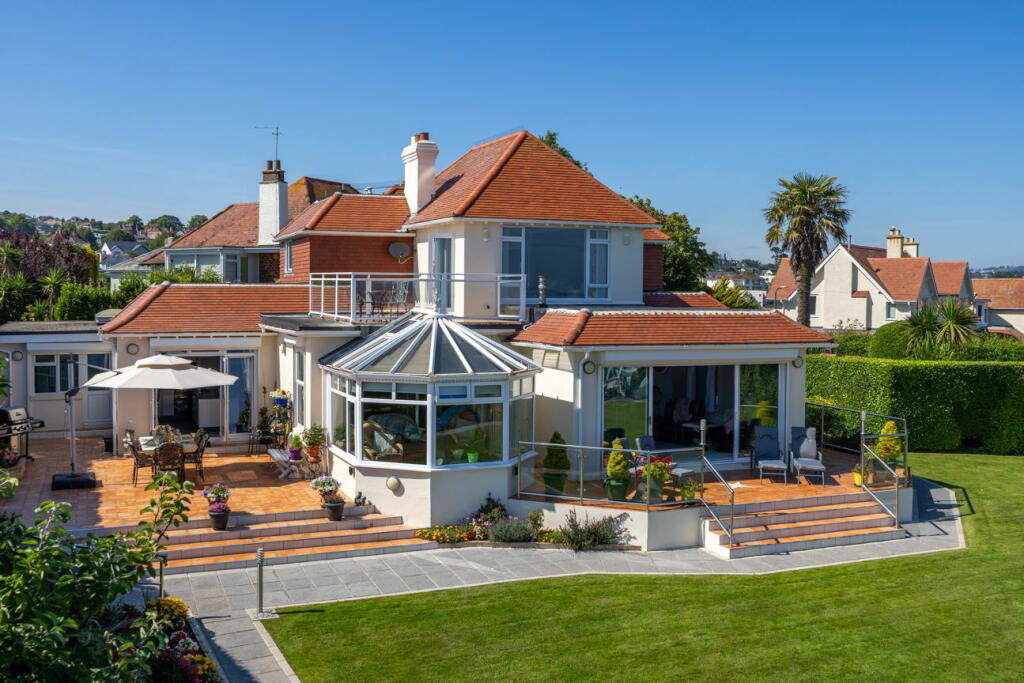 This property presents a compelling opportunity for discerning buyers seeking a luxury coastal home in a prime location. Situated on Cliff Road in Torquay, Devon, the residence offers breathtaking panoramic sea views over Tor Bay and the English Channel. The property is presented in excellent condition externally, featuring a well-maintained exterior and landscaping. Images reveal a substantial garden, providing a private and scenic outdoor space. The architecture blends traditional features with tasteful modern updates like a conservatory that maximises the stunning vistas. While internal images are not fully provided, the external presentation, location, and local pricing data suggest that this property holds considerable appeal and potential for buyers looking for a high-end seafront property. The proximity to Torquay town centre, train station and schools, adds significant convenience and makes it even more appealing. To truly assess the value, more information on the internal layout, condition, and square footage details would be beneficial; however, based on the information provided, it appears to be a premium property deserving of high-end market consideration. Note that the lack of precise plot size and interior photographs limits the depth of the analysis, however the value of the location and outdoor spaces is strongly evident in the provided images.