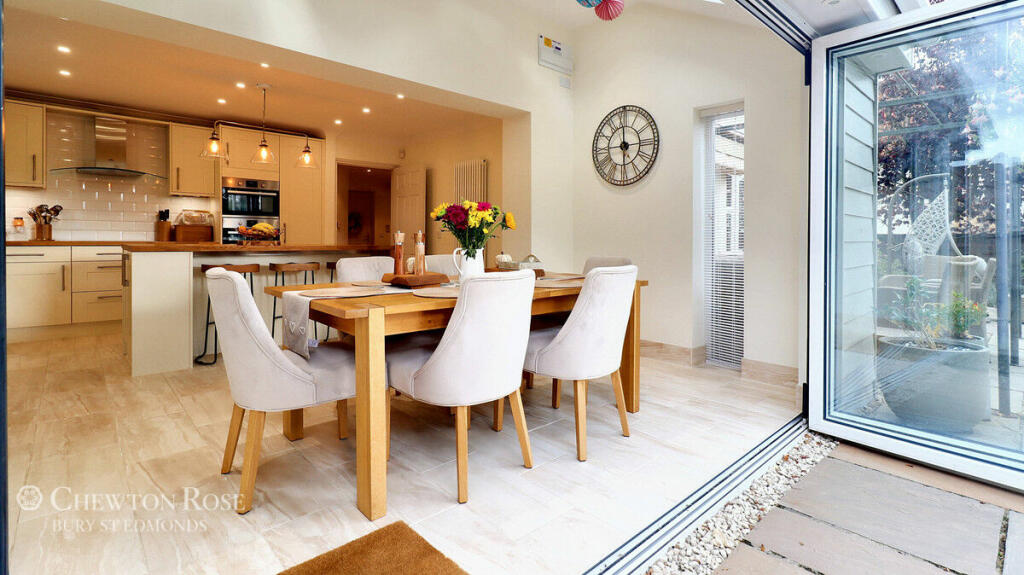 This property is a detached family home located in Stradishall, a village near Newmarket in Suffolk. The property appears well-maintained and benefits from a large garden with a patio area and outdoor kitchen. The interior photos show a modern, updated kitchen and bathrooms, and spacious living areas. The location is described as quiet and within a popular village. Several nearby primary schools are within a reasonable distance, although the provided data does not include details on secondary schools. The lack of information regarding the property’s square footage and plot size makes a definitive assessment of value per square foot impossible, preventing a complete analysis of the list price’s reasonableness. However, considering the apparent condition, the presence of a large garden, and the description of the property’s location as desirable, the list price appears to be in line with other properties in the area, although further data is needed to confirm this.
