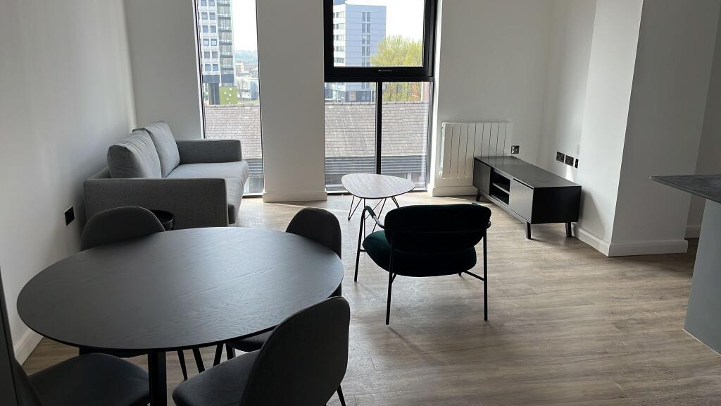 Modern 2-bed furnished apartment in Bishopgate Gardens, Preston. Features open-plan living, stylish kitchen with washing machine, fitted blinds, and spacious double bedrooms. Concierge service, rooftop terrace, and excellent city centre location.