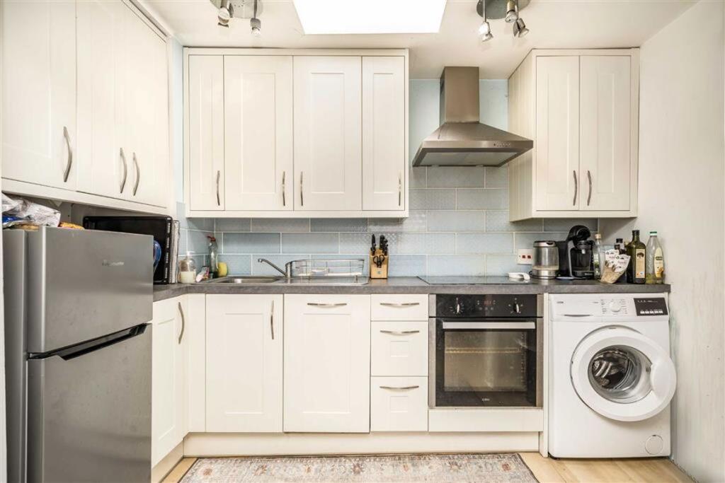 This is a one-bedroom flat located on Mile End Road in Stepney Green. The property is in reasonable condition, with a modern kitchen and bathroom. The flat is approximately 411.18 sq ft and is listed for £300,000. The location is convenient, with access to local amenities, shops, and transportation. Several schools are within a reasonable distance. The price per square foot is slightly above the local average, but the property represents reasonable value. Overall, this property would be suitable for a first-time buyer or investor looking for a well-located property in London.