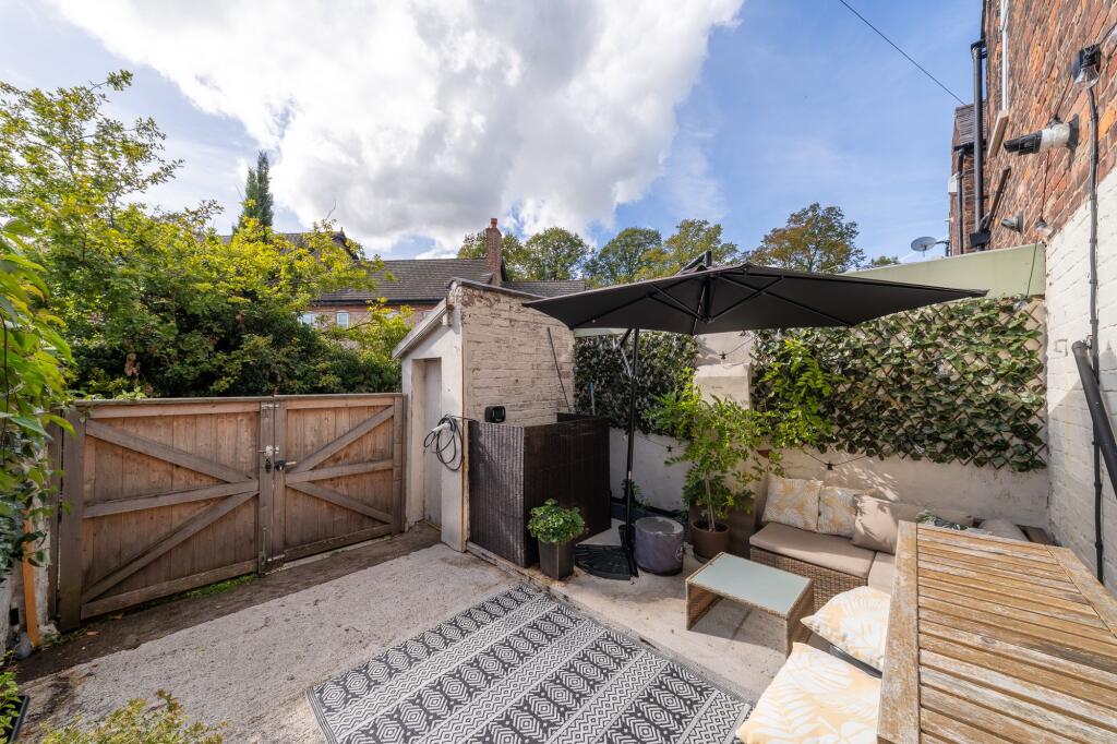 Beautiful period home in Knutsford's heart, with 2 bedrooms, 2 reception rooms, and upgraded kitchen. Charming features, modern conveniences, enclosed front garden, and rear courtyard. Close to town centre, shops, and transport. Ideal for stylish living.