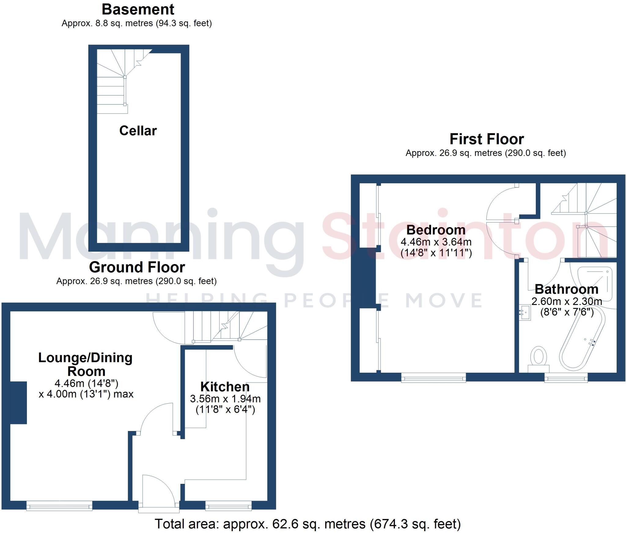 The property itself appears to be in good condition, with a recently updated kitchen and bathroom. The images show a modern aesthetic with laminate flooring and neutral colour schemes throughout. The property also includes a small rear yard. However, the plot size is relatively modest at 674.30 sqft.