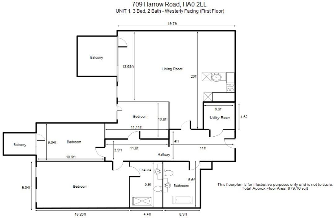 3 Bed 2 Bathroom, almost 1000 sqft NEW BUILD in Sudbury Town This beautifully presented new build westerly-facing 3 bedroom, 2 bathroom first floor apartment moments walk from Sudbury Town Station (Piccadilly Line) and Tesco