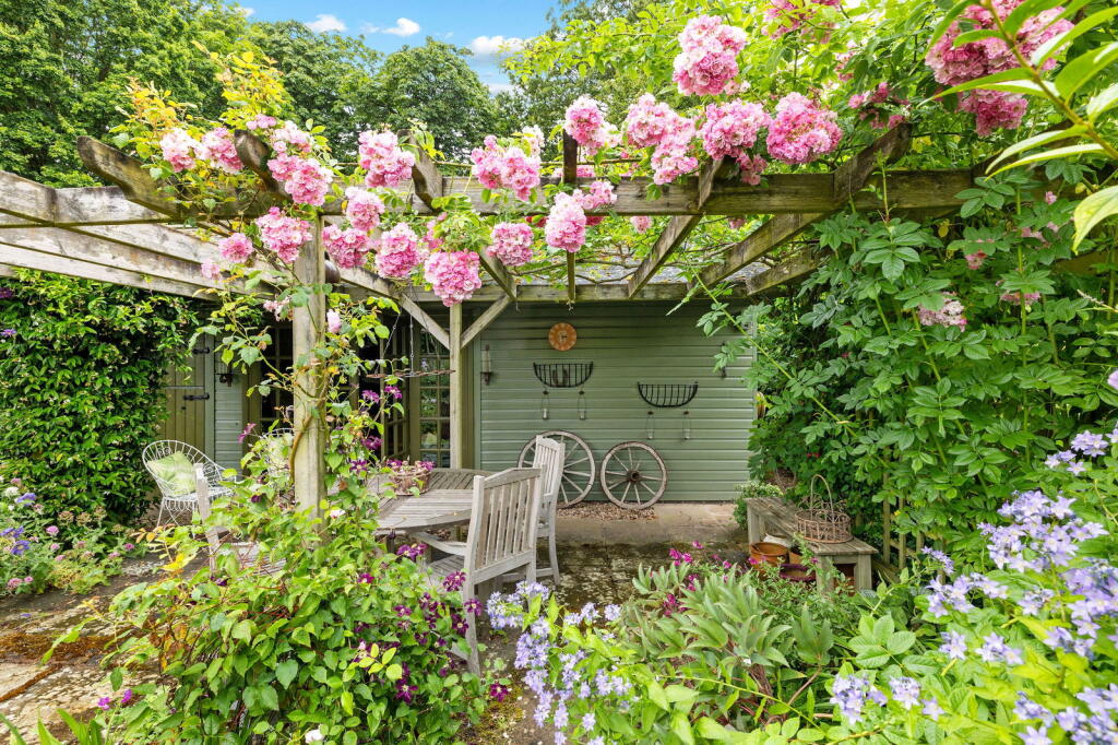 Edge of village living at its finest - handsome period country home set in 6 acres of gardens and parkland plus outbuildings including superb garaging