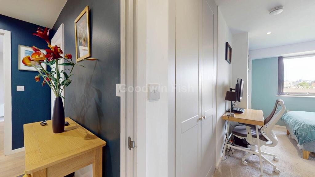 EWS1 form with B1 rating - Desirable canalside setting - Ideal urban sanctuary - Top floor - Balcony with unobstructed views - Two double bedrooms with fitted wardrobes by Sharps - Two bathrooms - Concierge - Secure allocated parking space - Vacant possession