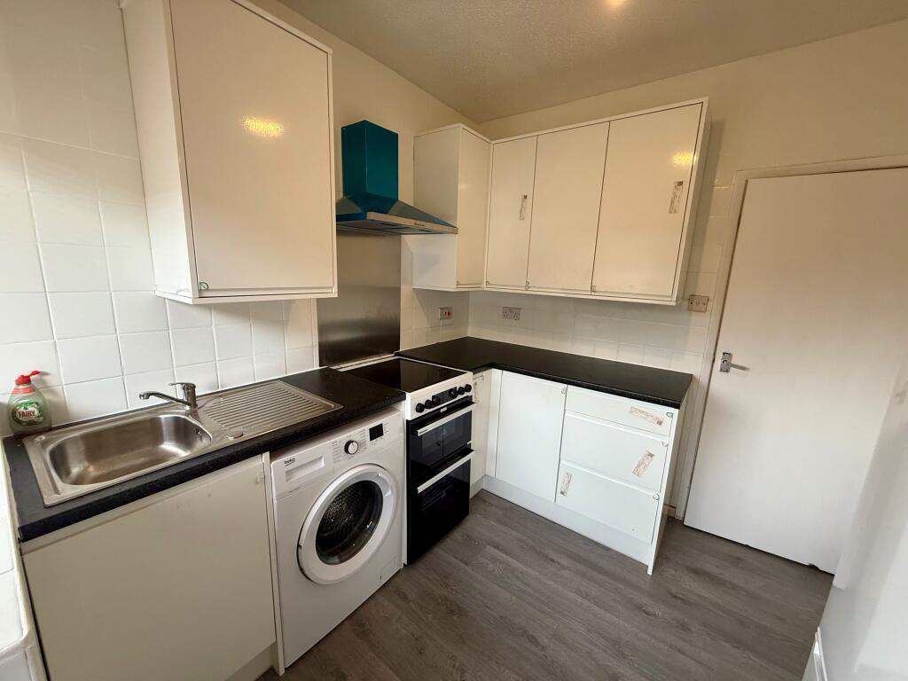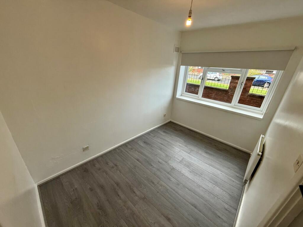 Modern two-bedroom ground floor flat with private entrance and allocated parking bay. Recently refurbished with a new fitted kitchen, fresh décor, one double bedroom, one small double, and a stylish three-piece bathroom