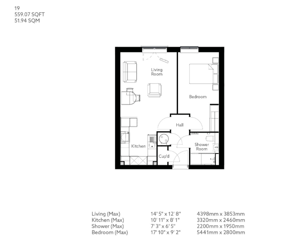 McCarthy Stone's Jessiefield Court - luxury living for the over 60s - one-bedroom, second-floor apartment, featuring 559 square feet of thoughtfully designed living space. With Juliette doors opening to views over Spath Road, this home combines elegance and comfort in an ideal setting