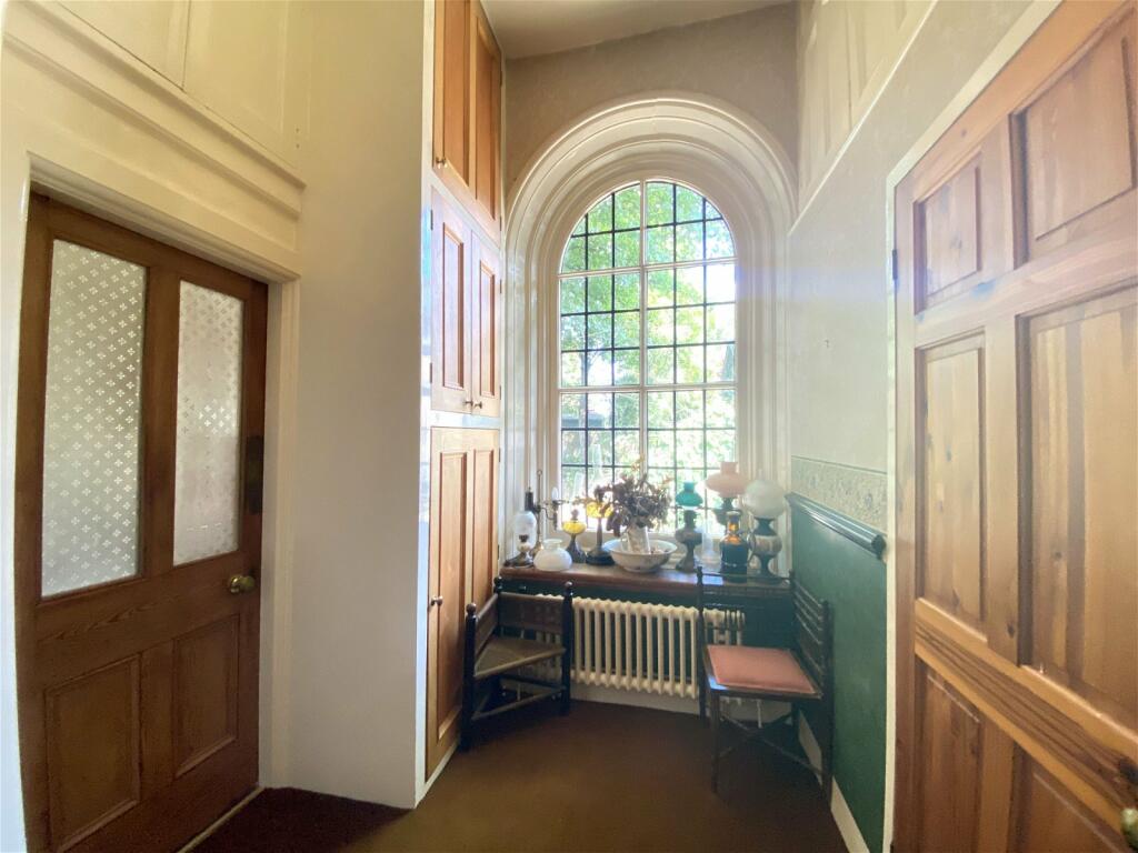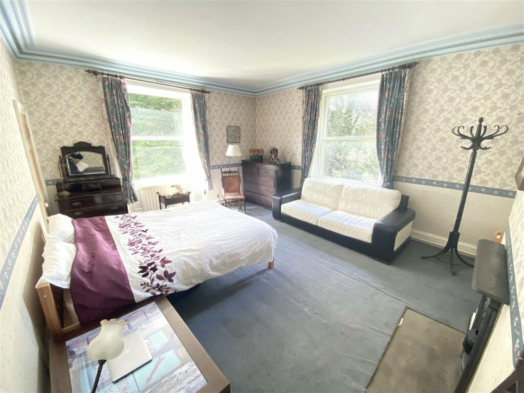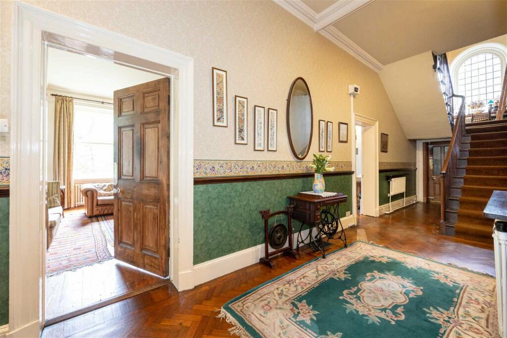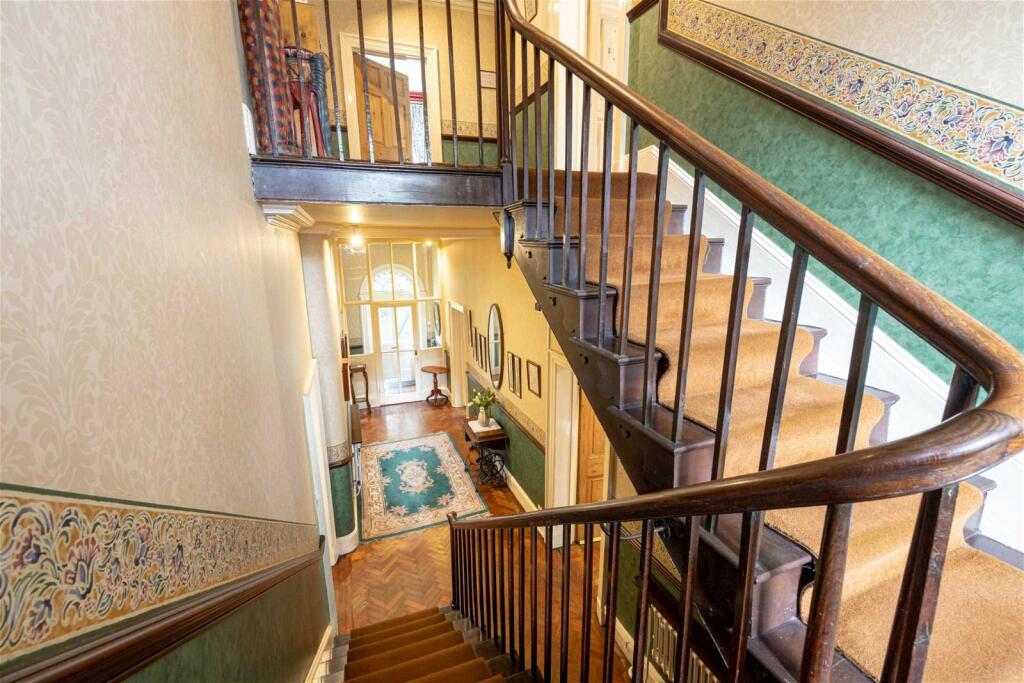 Park House, a Grade II listed semi-detached property in Shaw, Oldham, presents a unique opportunity for buyers seeking a large family home with historical charm. Dating back to 1650, the property boasts significant size (4,346 sq ft) and retains many of its original features, including large windows, high ceilings, and period fireplaces. The interior features a mix of original and updated elements. While some rooms appear well-maintained and characterful, others would likely benefit from renovations or upgrades to meet modern standards. The kitchen appears dated.
