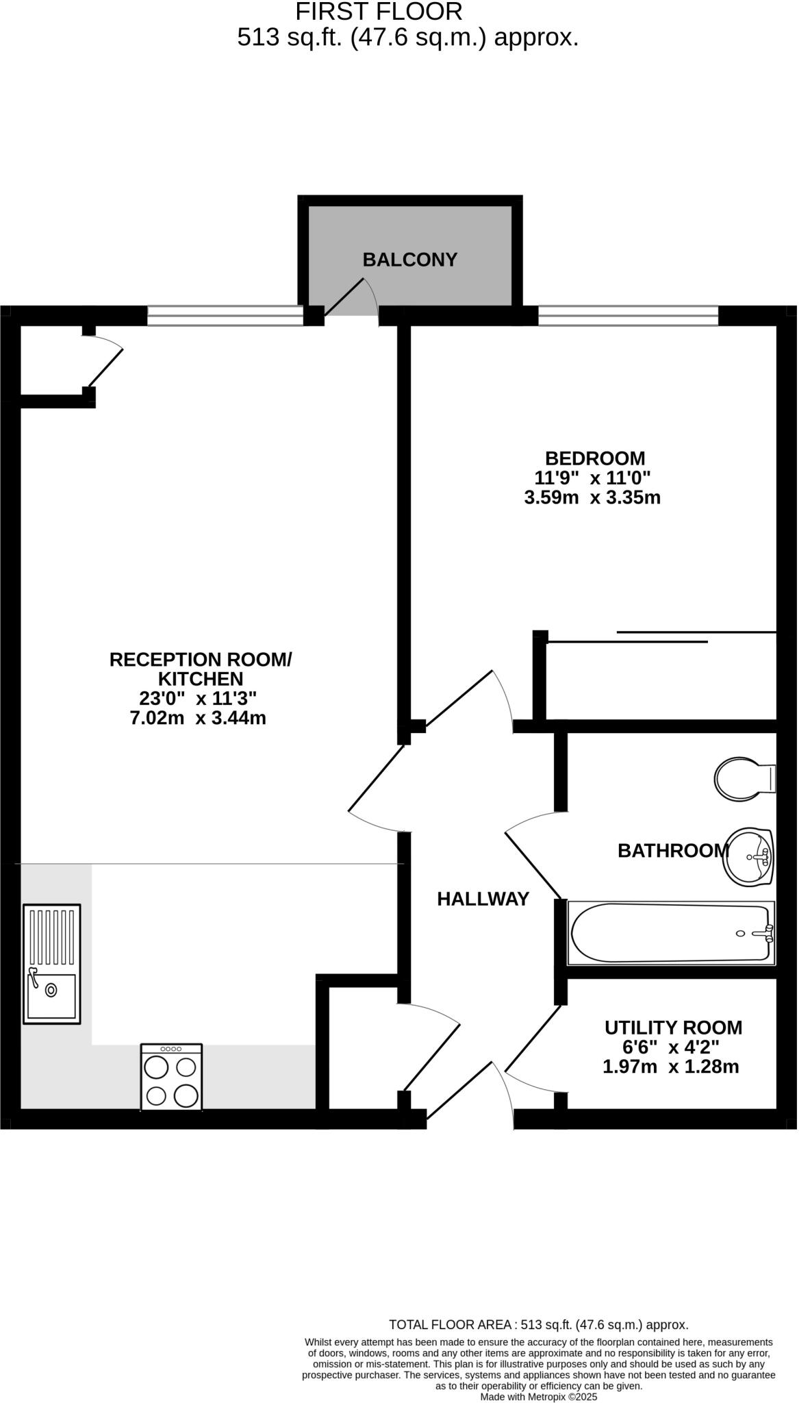 This one-bedroom apartment is located in West Drayton, a suburb of London. The property is modern and well-maintained, as seen in the provided images. It features an open-plan living area, a modern kitchen, and a private balcony. The location is convenient, with nearby transportation links and schools. However, the property has a small plot size (0 sqft). The list price is significantly lower than the average price for the area, but this may be due to the smaller size of the property.