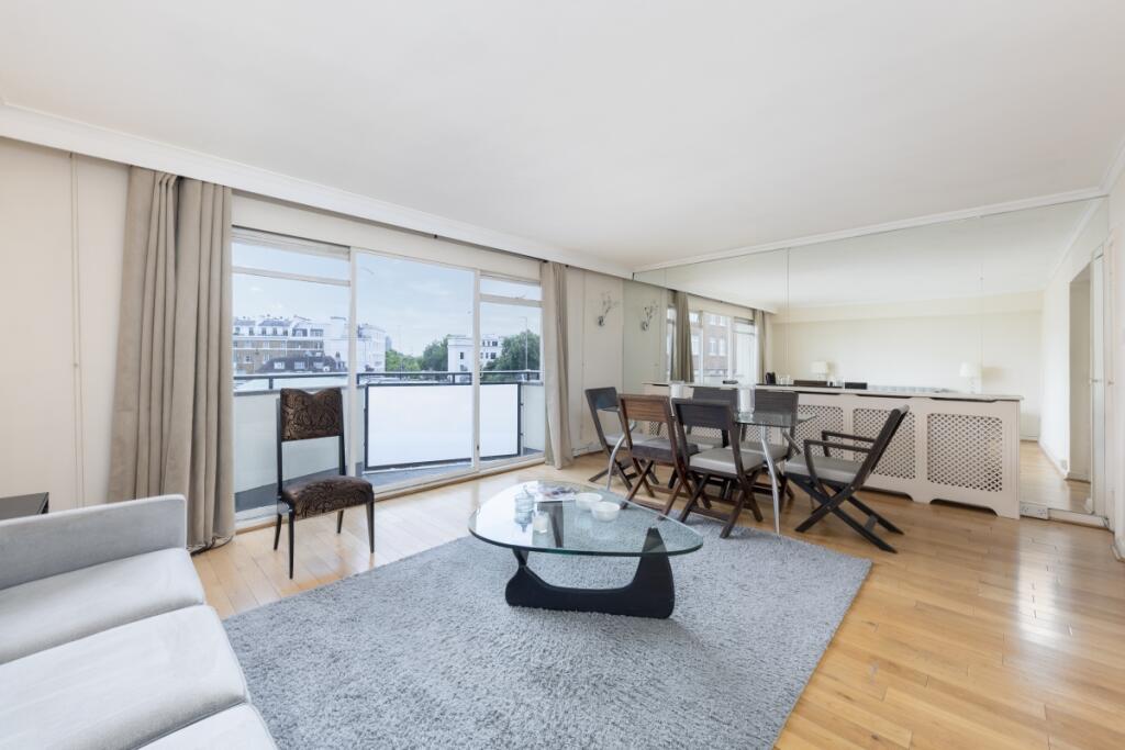 82 Sq. M, 2 bathrooms, 4th floor, lift, balcony, wooden floors, porter, storage, communal roof terrace with views of Hyde Park.