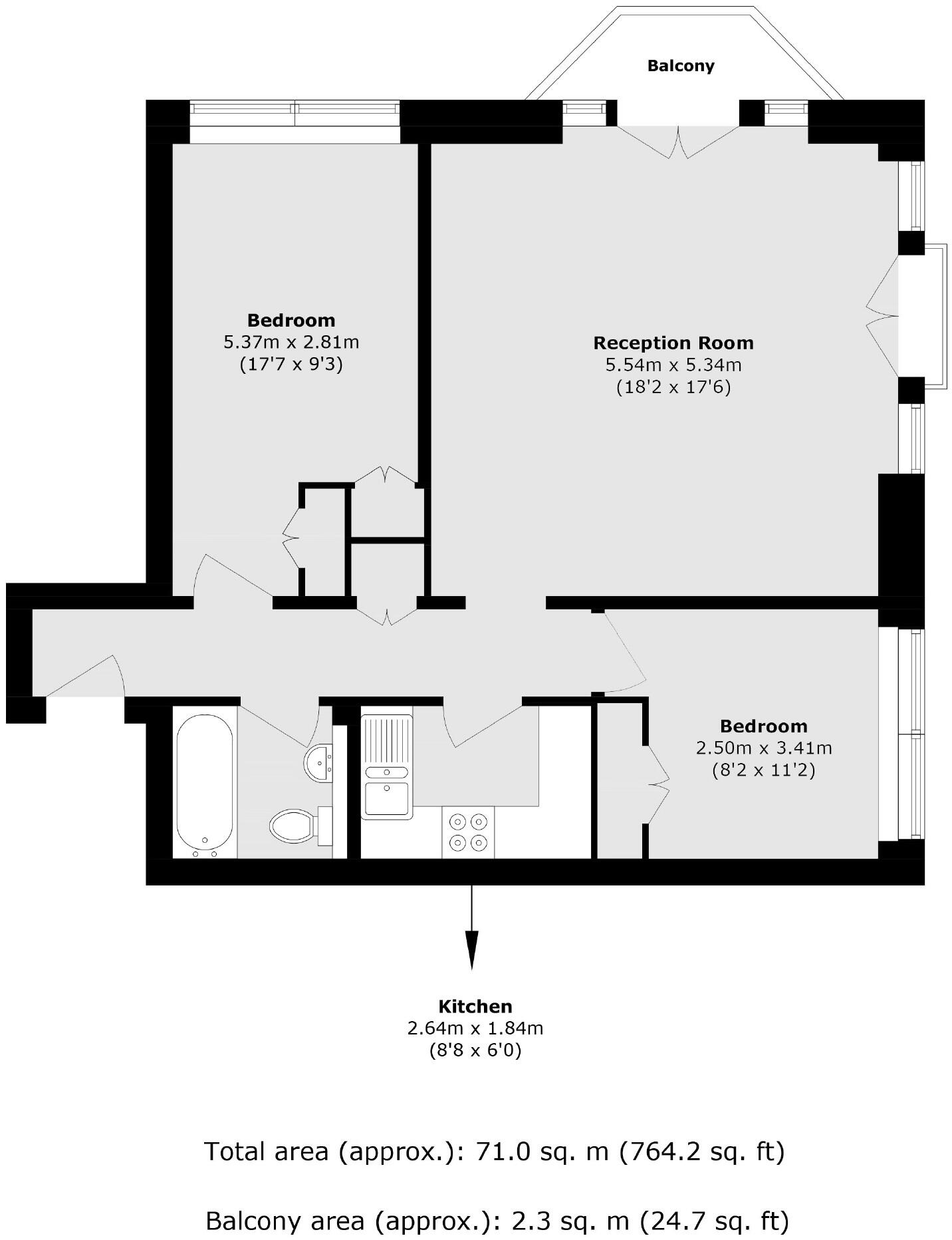 This is a two-bedroom flat located in the Caledonian area of Islington, London. The property is situated on New Wharf Road, within the Ice Wharf development. The flat offers 764.24 sq ft of living space and includes one bathroom. The location is a strong point, with proximity to King’s Cross station and various amenities. While the property appears to be in decent condition, some areas could benefit from updating. The lack of private outdoor space is a typical characteristic of flats in this area. The asking price of £750,000 seems appropriate given the location, size, and condition of the property. The flat is modern in style.