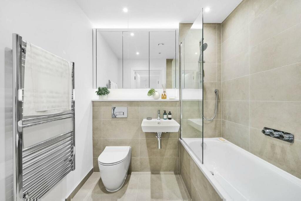 This one-bedroom, one-bathroom apartment in Bermondsey, South East London, is presented as a modern, newly built property in seemingly excellent condition. The images showcase a contemporary design with a neutral color palette, featuring a well-appointed kitchen, bathroom, and open-plan living area. The inclusion of a balcony, however small, offers some outdoor space. The location is advantageous with multiple transport links within a reasonable distance. There are several well-rated schools within easy reach, making this property appealing to families. However, the lack of significant outdoor space and relatively small square footage might be a drawback for some buyers. The listing price seems relatively in line with other comparable properties in the area, although a lack of precise square footage data for comparison makes it difficult to conclusively assess value. The property’s condition, location, and current market trends, all support a positive appraisal. The absence of substantial land and the relatively small size for the price are the main factors that might reduce the overall attractiveness for certain buyers, although it’s clearly a well presented and desirable property overall.